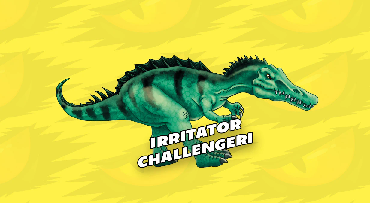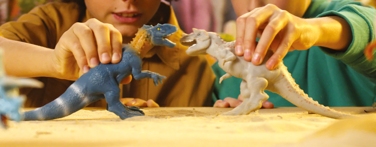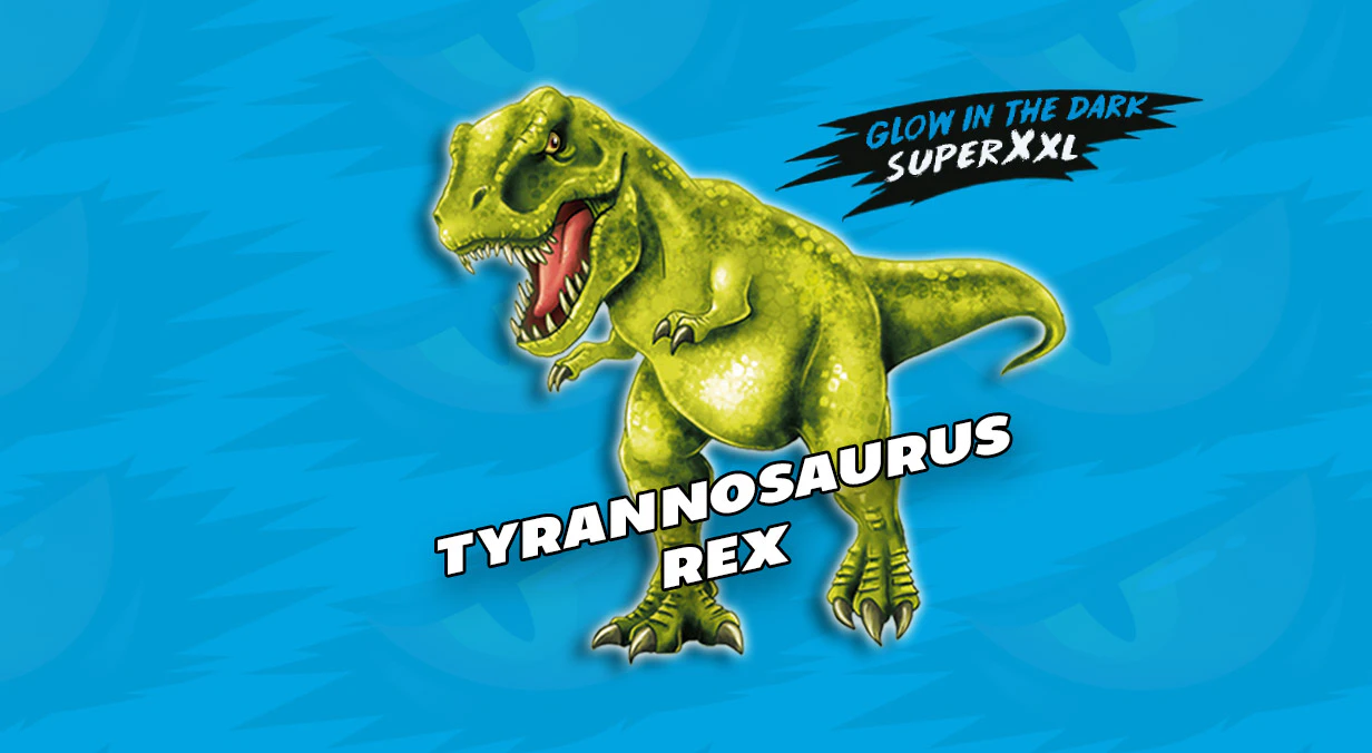 Dinosaurios carnívoros y herbívoros con dientes afilados. Algunos viven en tierra, otros vuelan. No los dejes escapar y encuentra los especiales: dos que cambian de color en agua caliente, el T-rex es XXL y brilla en la oscuridad, uno es súper elástico, otro es transparente con un cuerpo bicolor por dentro, ¡y otro está hecho de oro!