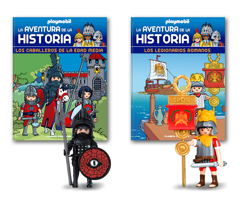 Planeta DeAgostini presenta una exclusiva colección de sets de figuras y libros PLAYMOBIL para divertirse y aprender jugando con las grandes etapas, lugares y civilizaciones de la historia. ¡Con cada entrega, un nuevo tema histórico para descubrir con tus personajes preferidos!