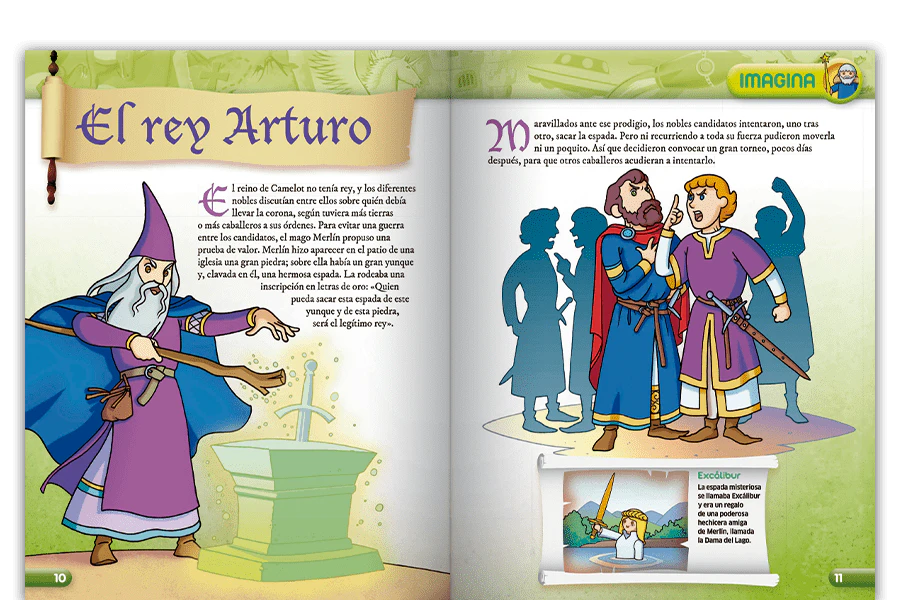 Una leyenda, una historia o un cuento asociado a la época de cada título. Leyendas sioux, cuentos japoneses, romances medievales o historias reales presentados como breves relatos.