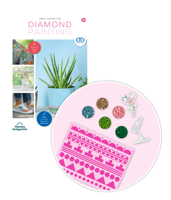 Diamond Painting es una tendencia creativa que consiste en pegar pequeños diamantes sobre un lienzo impreso, único y especial, siguiendo una serie de símbolos. ¡Es facilísimo! Con la ayuda de un bolígrafo o lápiz, una bandeja y un poco de cera, podrás empezar a colocar los diamantes sobre grandes lienzos.También puedes usar los diamantes, las plantillas y las pegatinas para decorar objetos y accesorios de tu vida diaria.