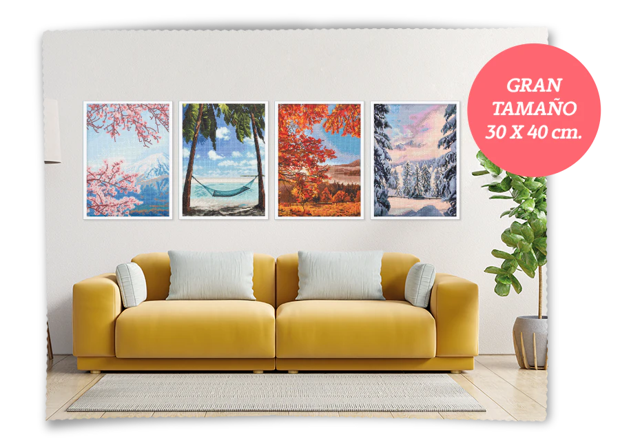 Descubre esta tendencia creativa que consiste en pegar pequeños diamantes sobre un lienzo impreso, único y especial, siguiendo una serie de símbolos. Con nuestras herramientas y materiales incluidos podrás decorar objetos y accesorios de tu vida diaria, ¡además de realizar 4 lienzos exclusivos de las estaciones del año! El Diamond Painting es mucho más que una manualidad, tiene múltiples beneficios como: