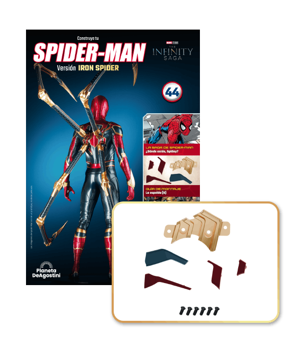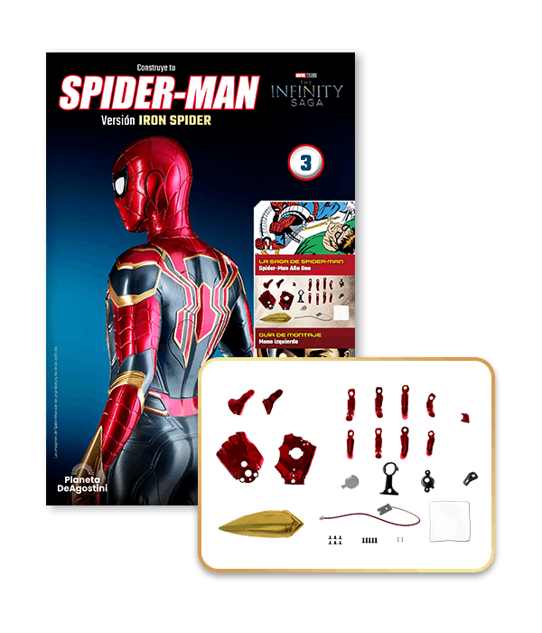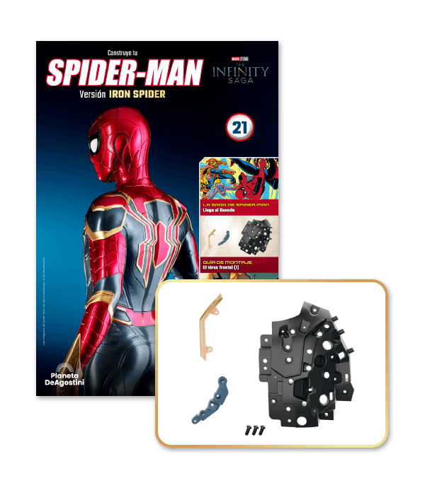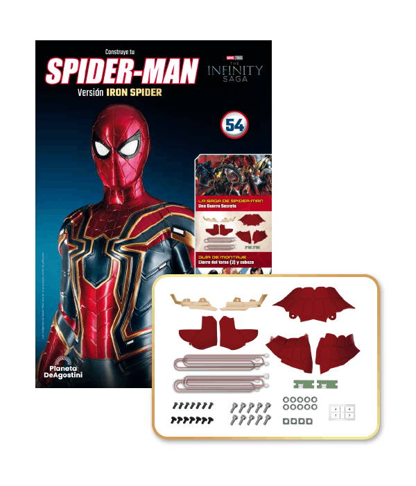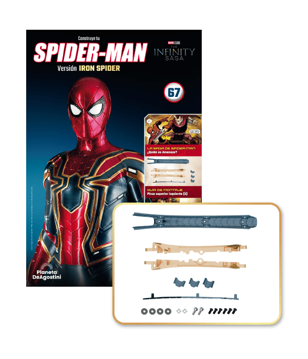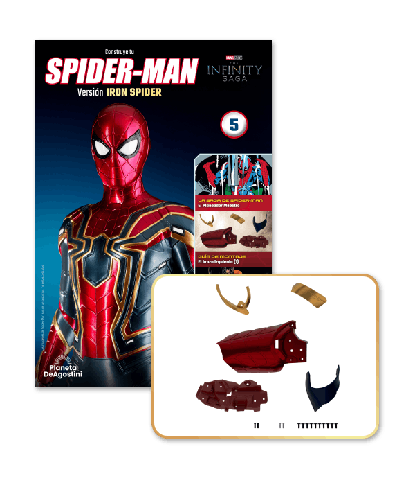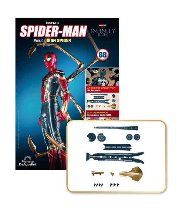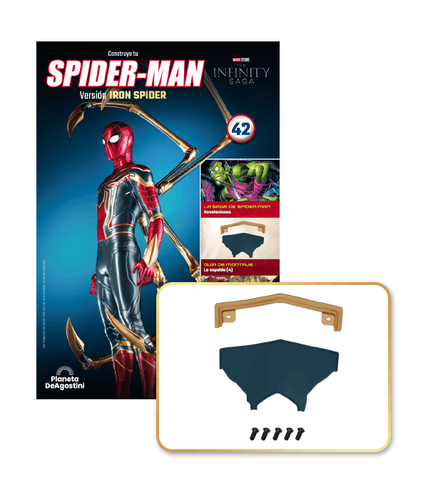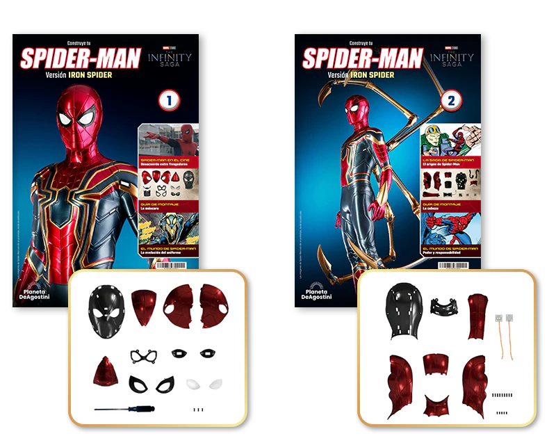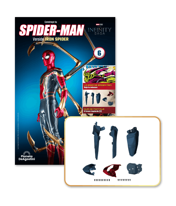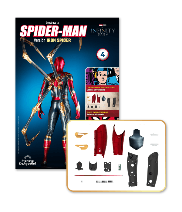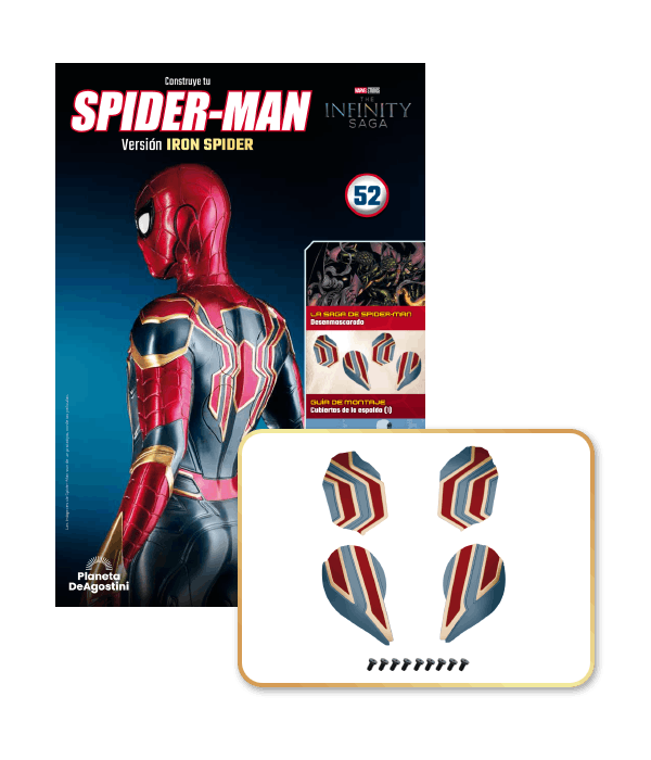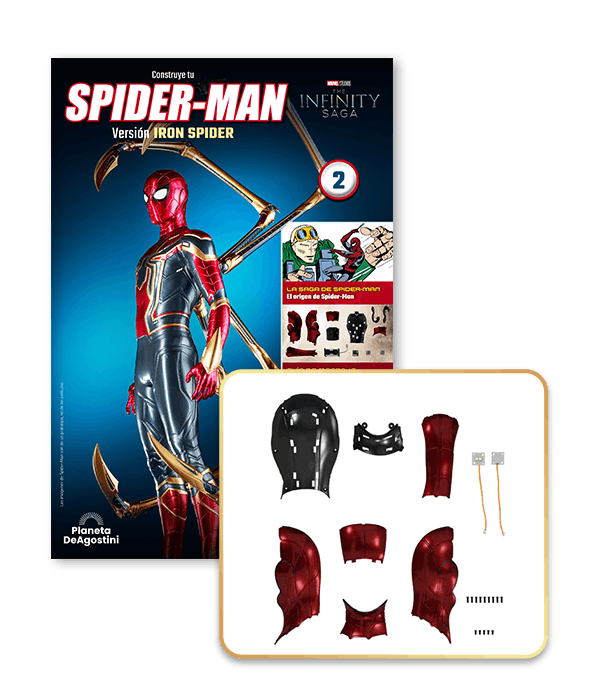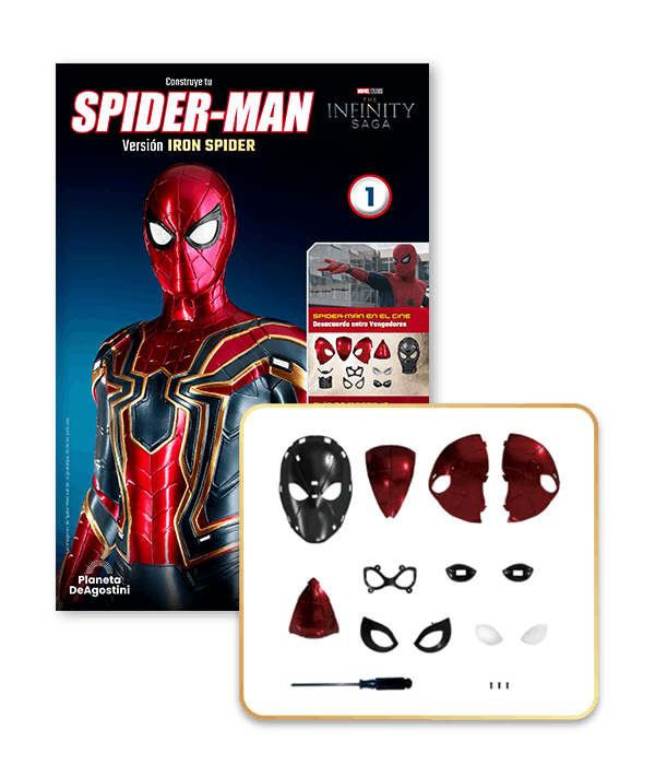 Increíblemente detallada, esta impresionante reproducción a gran escala de la armadura de Iron Spider se ofrece en una nueva colección inédita que ningún fan de Marvel querrá perderse. Además, cada entrega de tu maqueta irá acompañada de un extenso contenido editorial con detalles e ilustraciones increíbles de las películas.