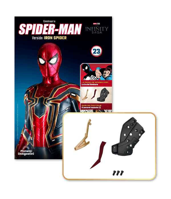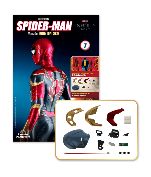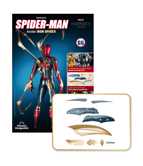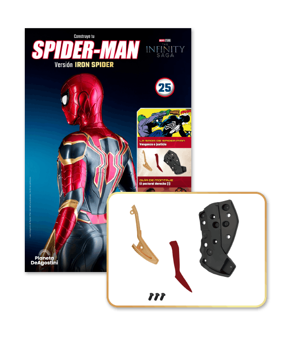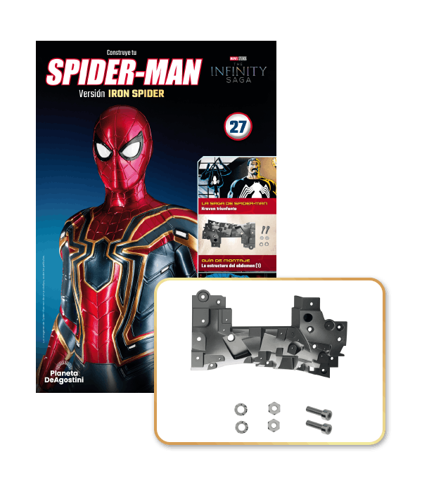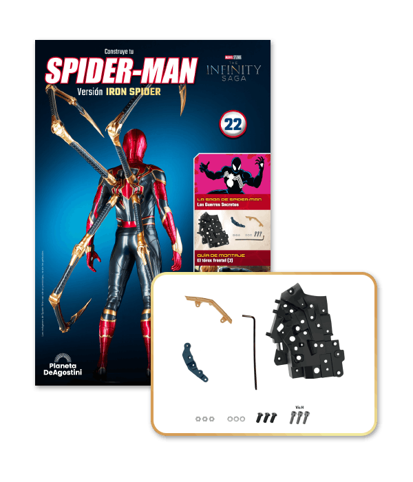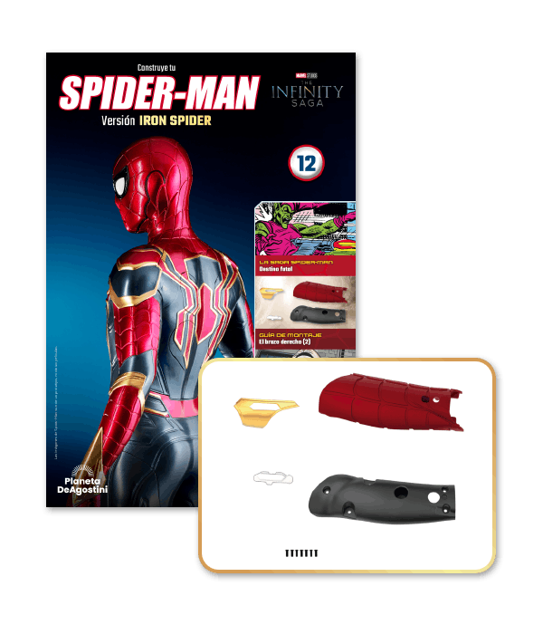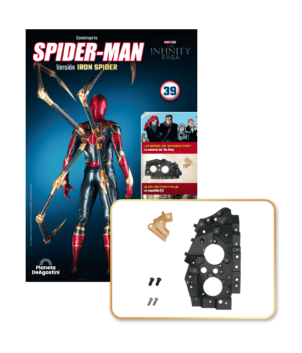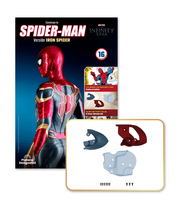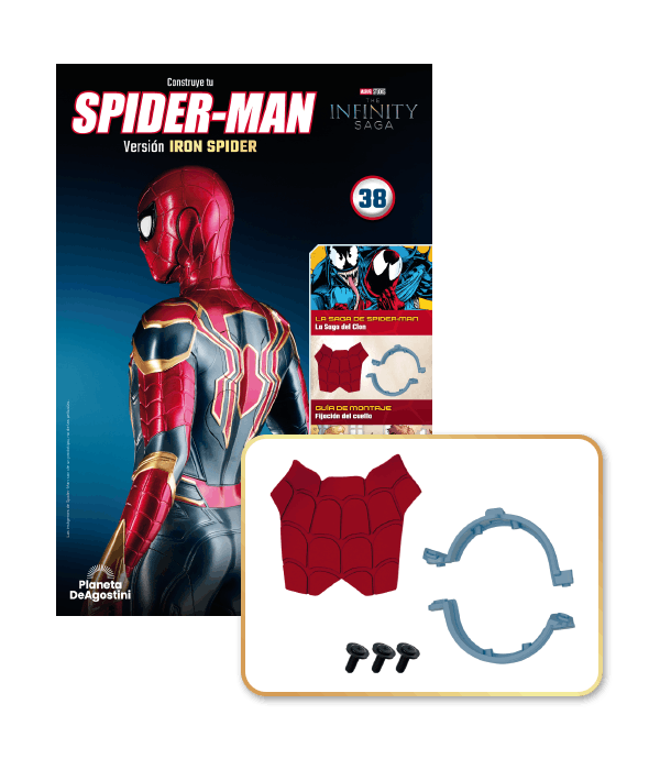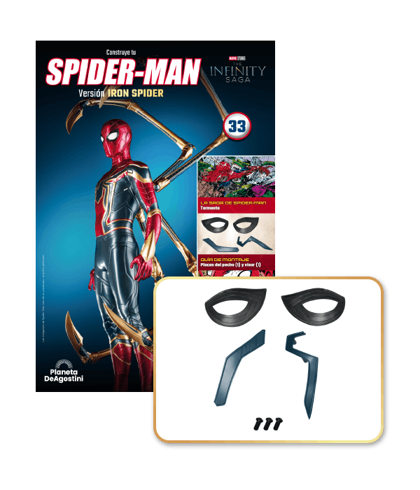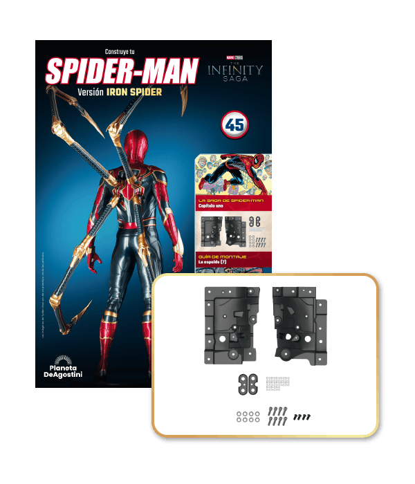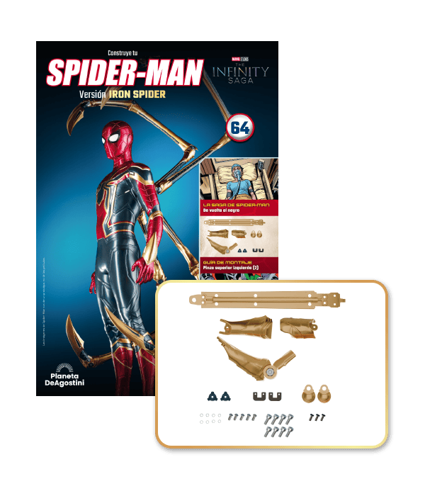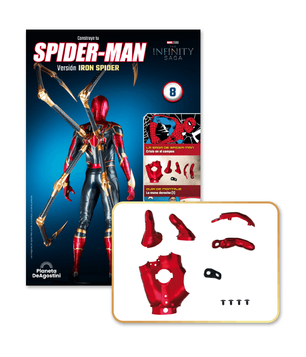 Increíblemente detallada, esta impresionante reproducción a gran escala de la armadura de Iron Spider se ofrece en una nueva colección inédita que ningún fan de Marvel querrá perderse. Además, cada entrega de tu maqueta irá acompañada de un extenso contenido editorial con detalles e ilustraciones increíbles de las películas.