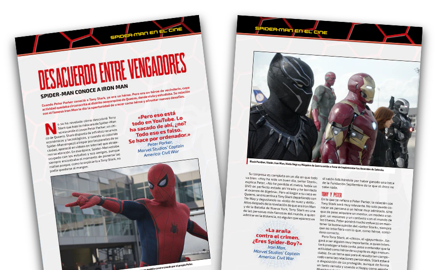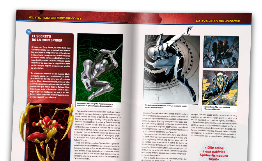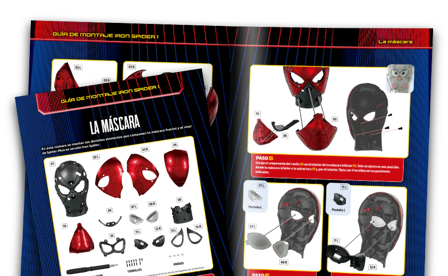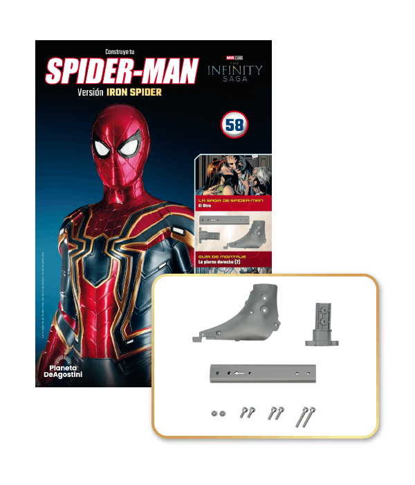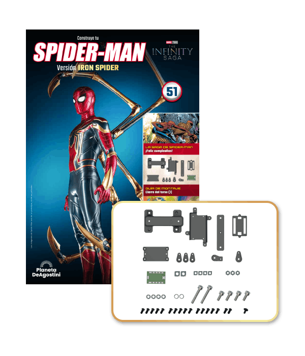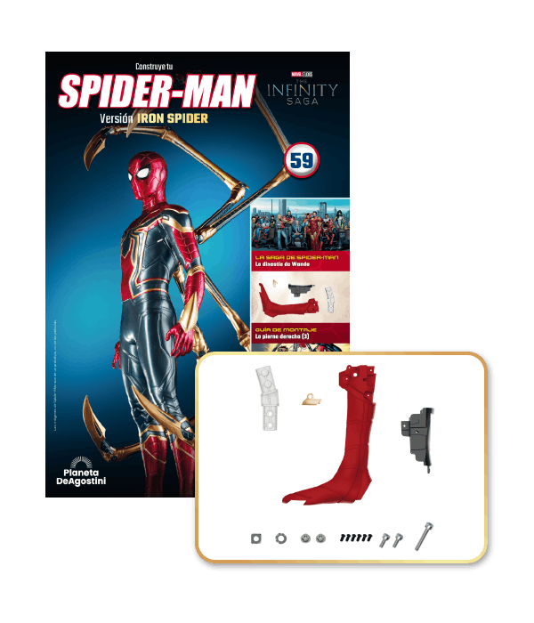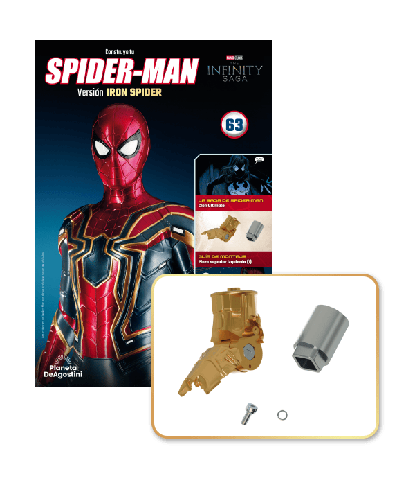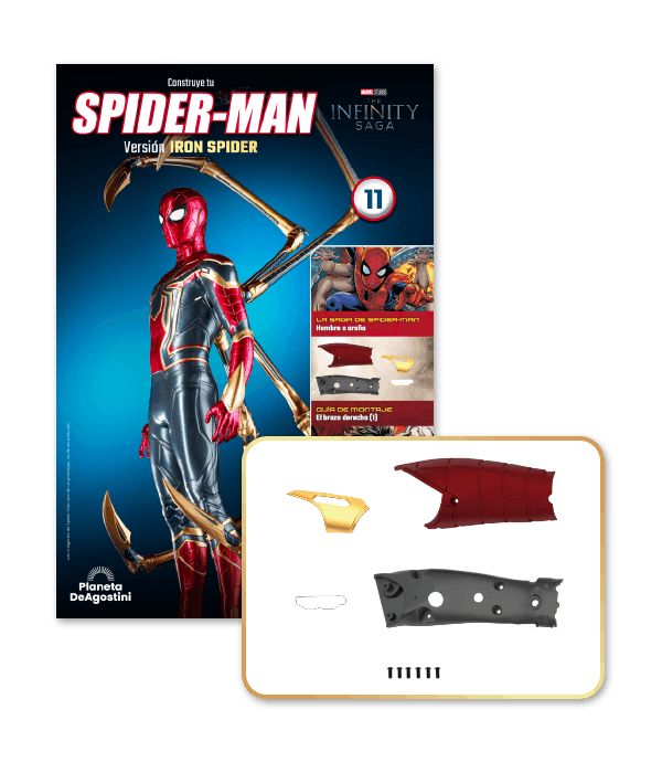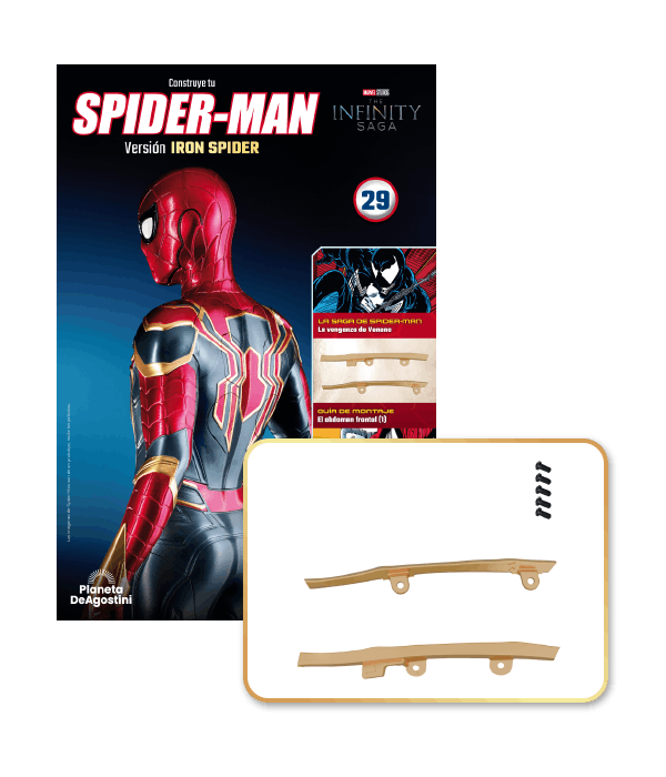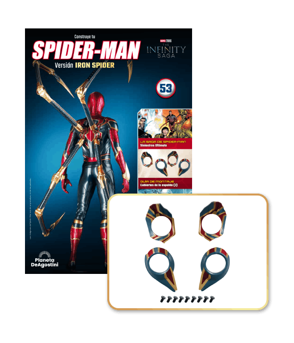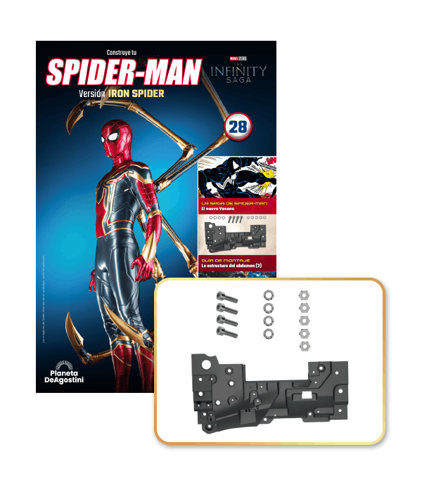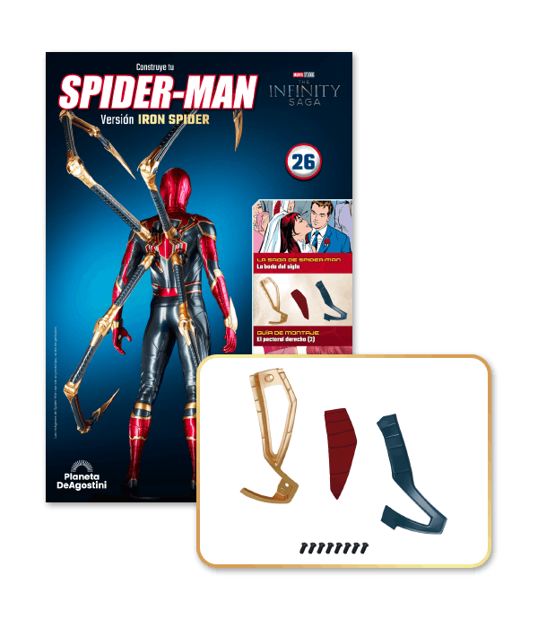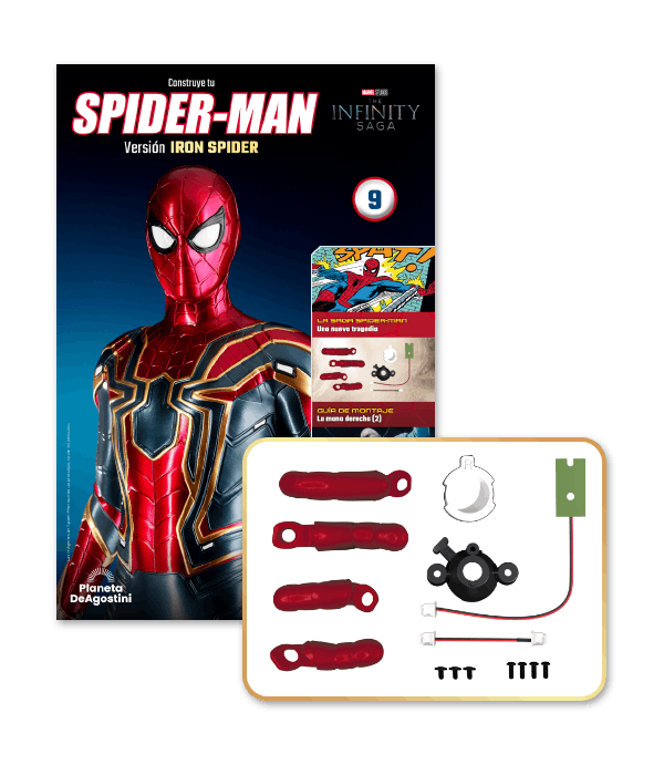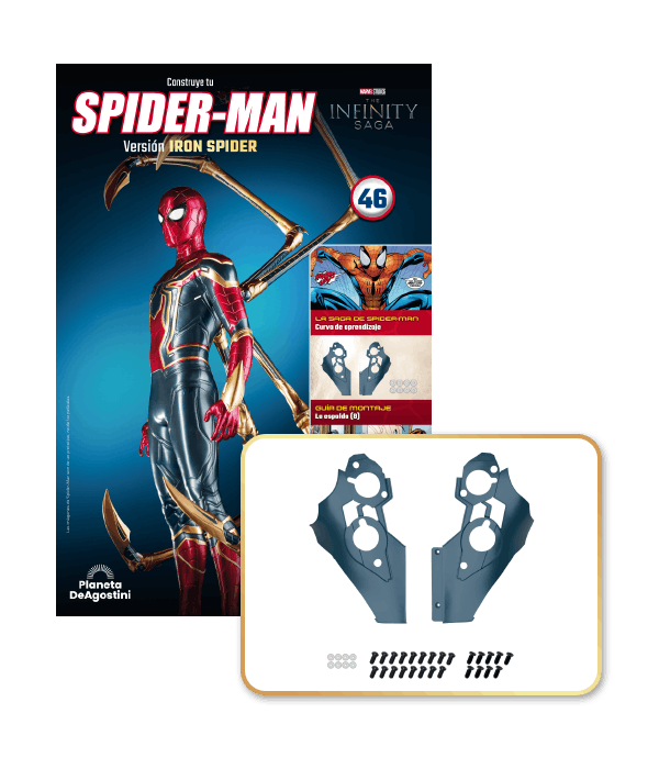 Increíblemente detallada, esta impresionante reproducción a gran escala de la armadura de Iron Spider se ofrece en una nueva colección inédita que ningún fan de Marvel querrá perderse. Además, cada entrega de tu maqueta irá acompañada de un extenso contenido editorial con detalles e ilustraciones increíbles de las películas.