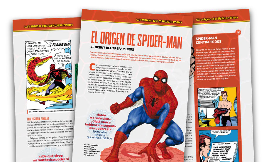 Desde el primer día en que Peter Parker se enfundó su traje casero y utilizó su lanzatelarañas, hasta sus aventuras con los mayores héroes y villanos de Marvel... Aquí encontrarás enemigos épicos, crisis personales y batallas memorables en la vida de un niño de Queens destinado a convertirse en leyenda.
