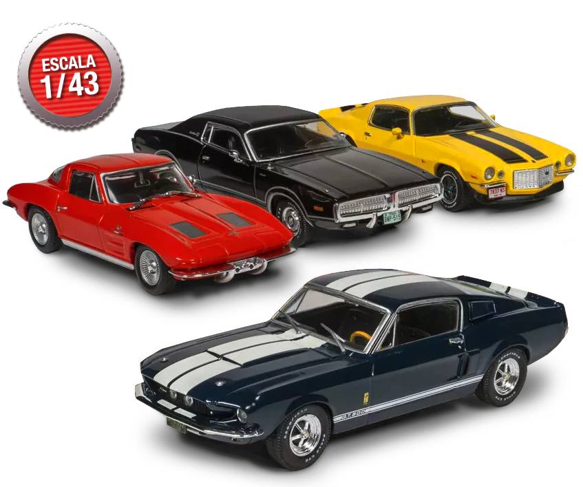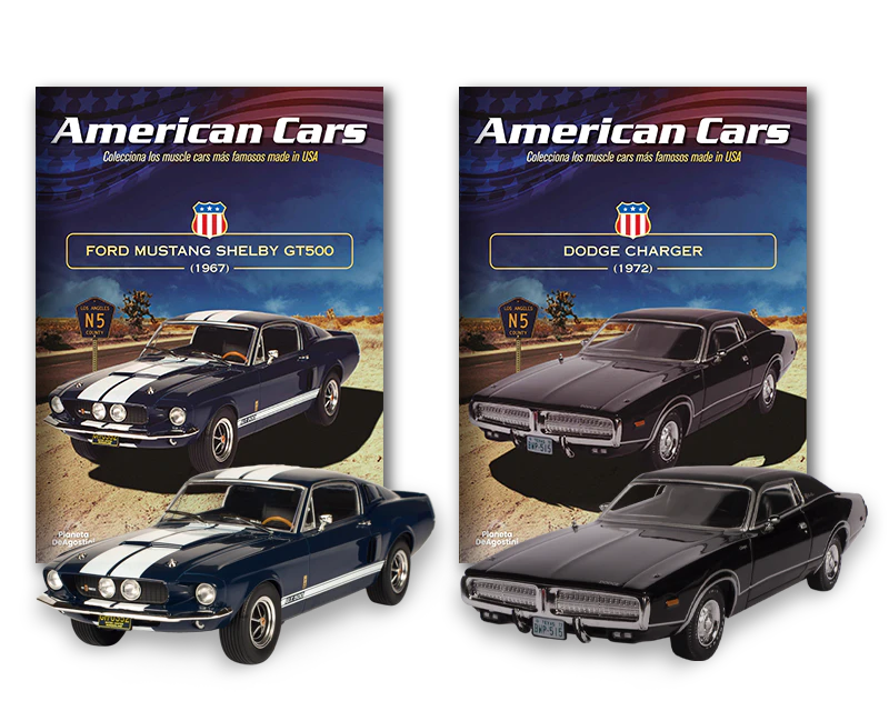 Esta colección recorre ese momento crucial del automovilismo estadounidense con la mejor selección de modelos de las grandes marcas: Chevrolet, Ford, Plymouth, Pontiac, Oldsmobile, Dodge o AMC.