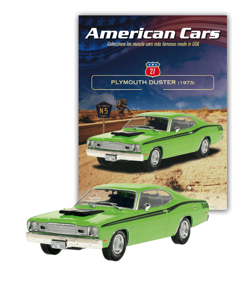 Versión deportiva del económico Plymouth Valiant, el Duster, con su motor de 340 pulgadas cúbicas que desarrollaba 275 cv SAE brutos, fue uno de los muscle cars más accesibles del mercado en un momento en el que las elevadas primas de los seguros encarecían este tipo de coches.