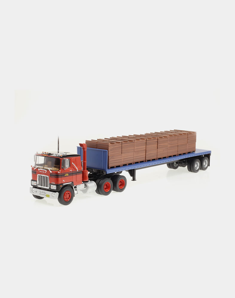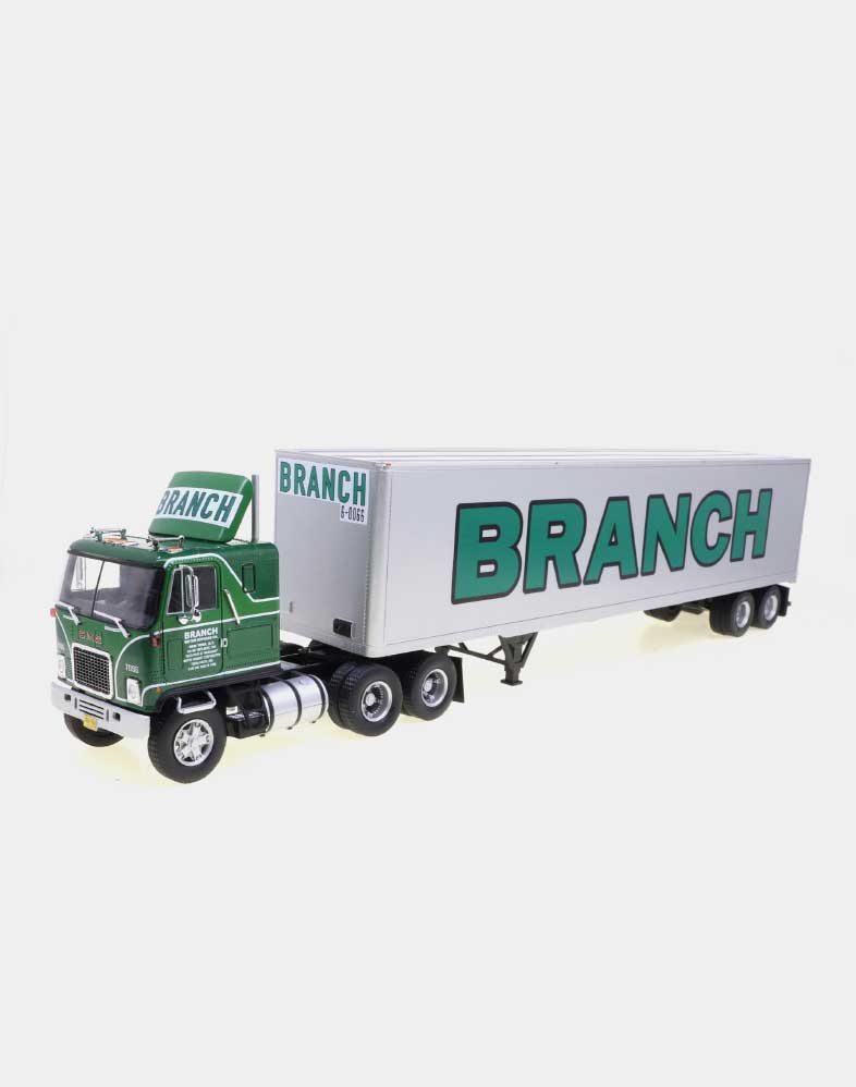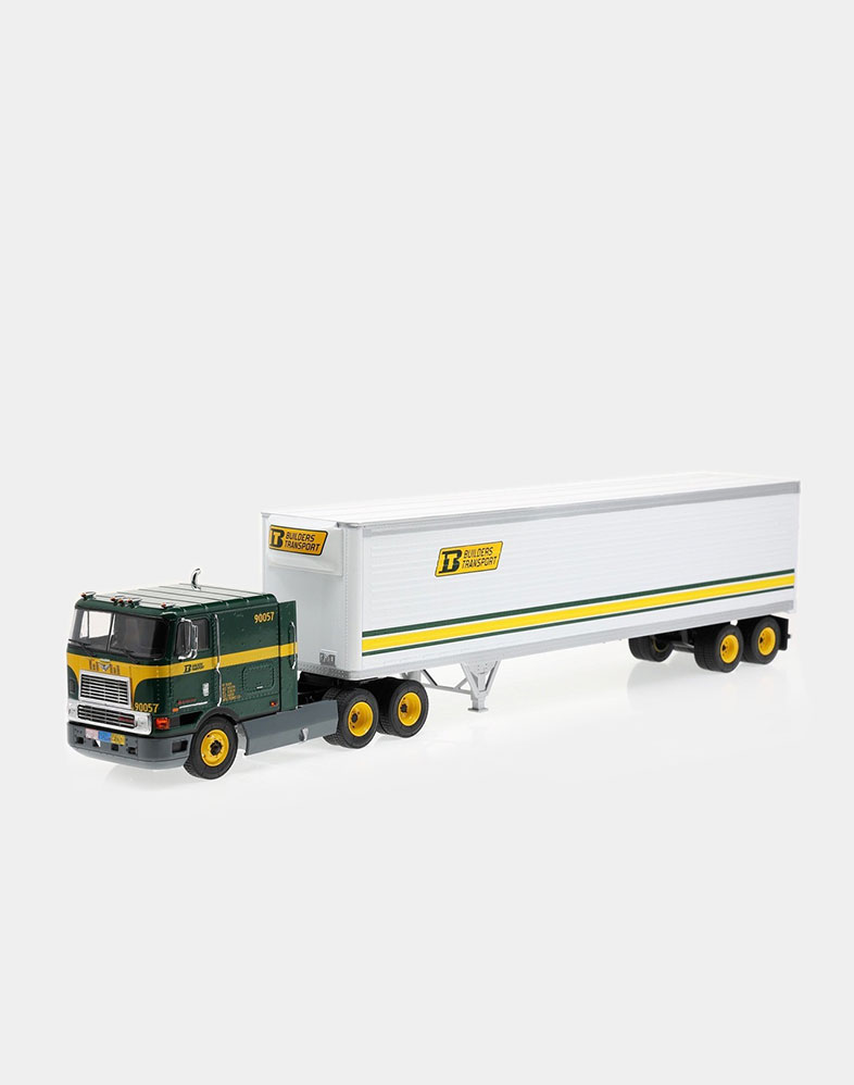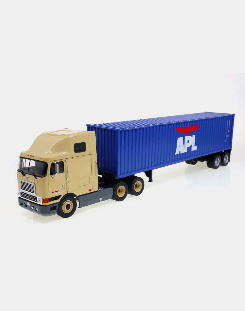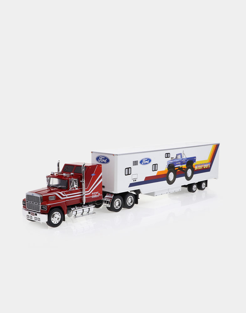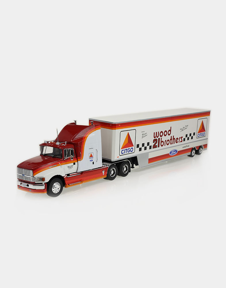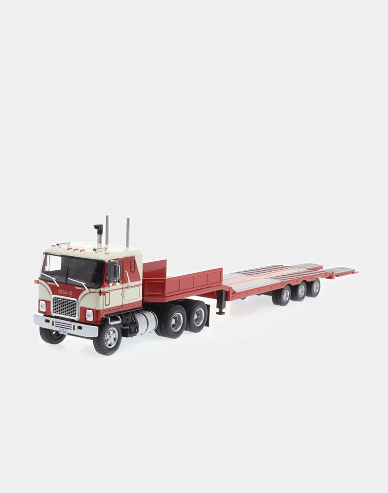 El Ford LTL 9000 no solo compitió de tú a tú en los años setenta y ochenta con modelos tan emblemáticos como el W 900 de Kenworth y el Mack Super Liner, sino que fue el primer modelo que ofreció un sleeper sobreelevado y más largo de lo habitual, donde el conductor podía disfrutar de una gran cama y sobraba espacio para tres bloques de armarios. La versión que ofrecemos es la del Folgers Racing Team, uno de los equipos emblemáticos de la NASCAR.