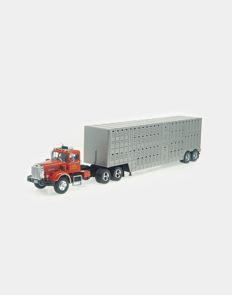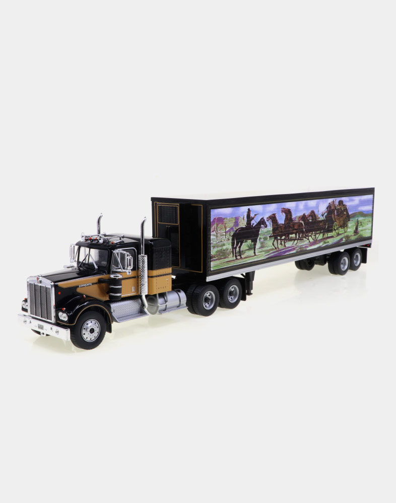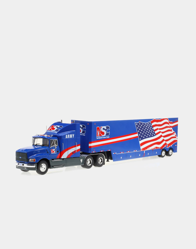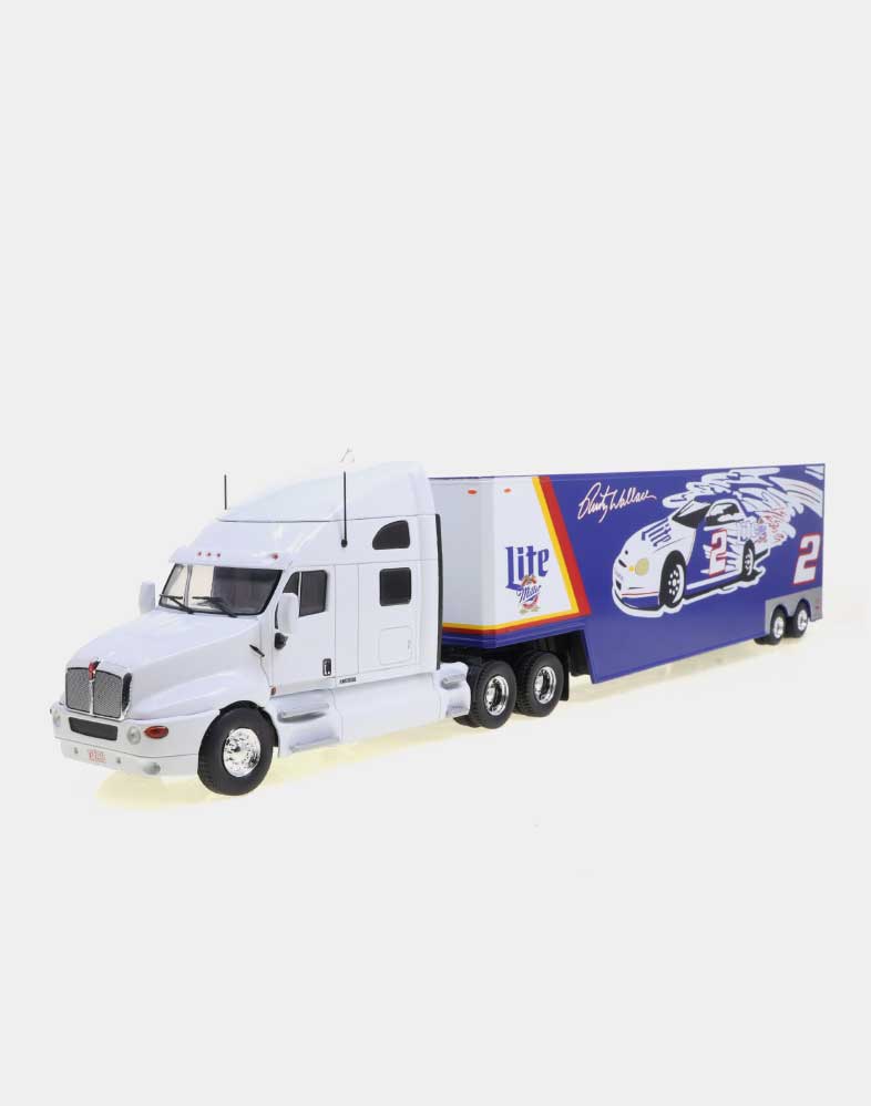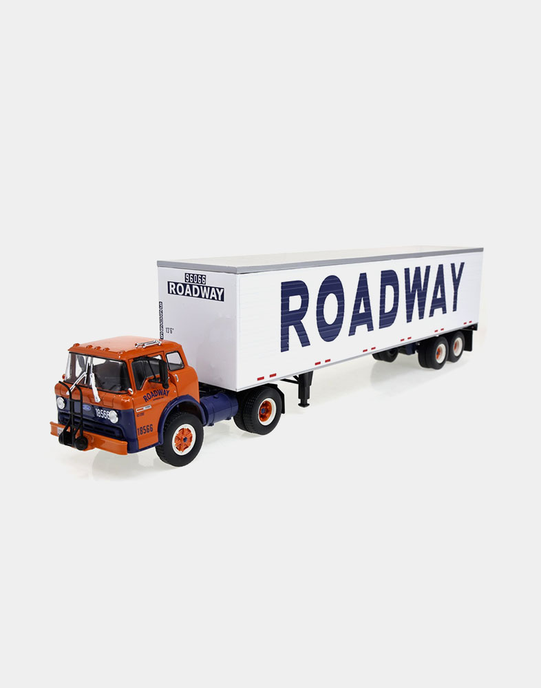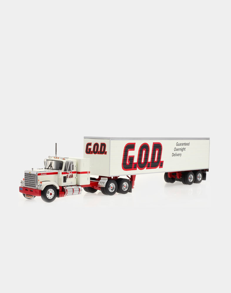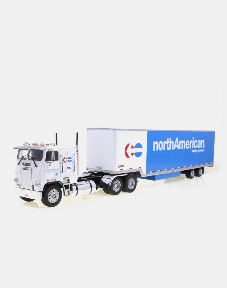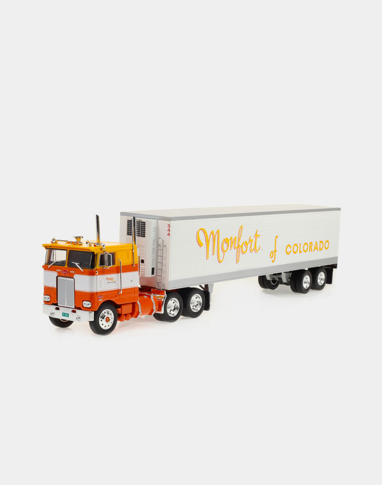 El Ford LTL 9000 no solo compitió de tú a tú en los años setenta y ochenta con modelos tan emblemáticos como el W 900 de Kenworth y el Mack Super Liner, sino que fue el primer modelo que ofreció un sleeper sobreelevado y más largo de lo habitual, donde el conductor podía disfrutar de una gran cama y sobraba espacio para tres bloques de armarios. La versión que ofrecemos es la del Folgers Racing Team, uno de los equipos emblemáticos de la NASCAR.