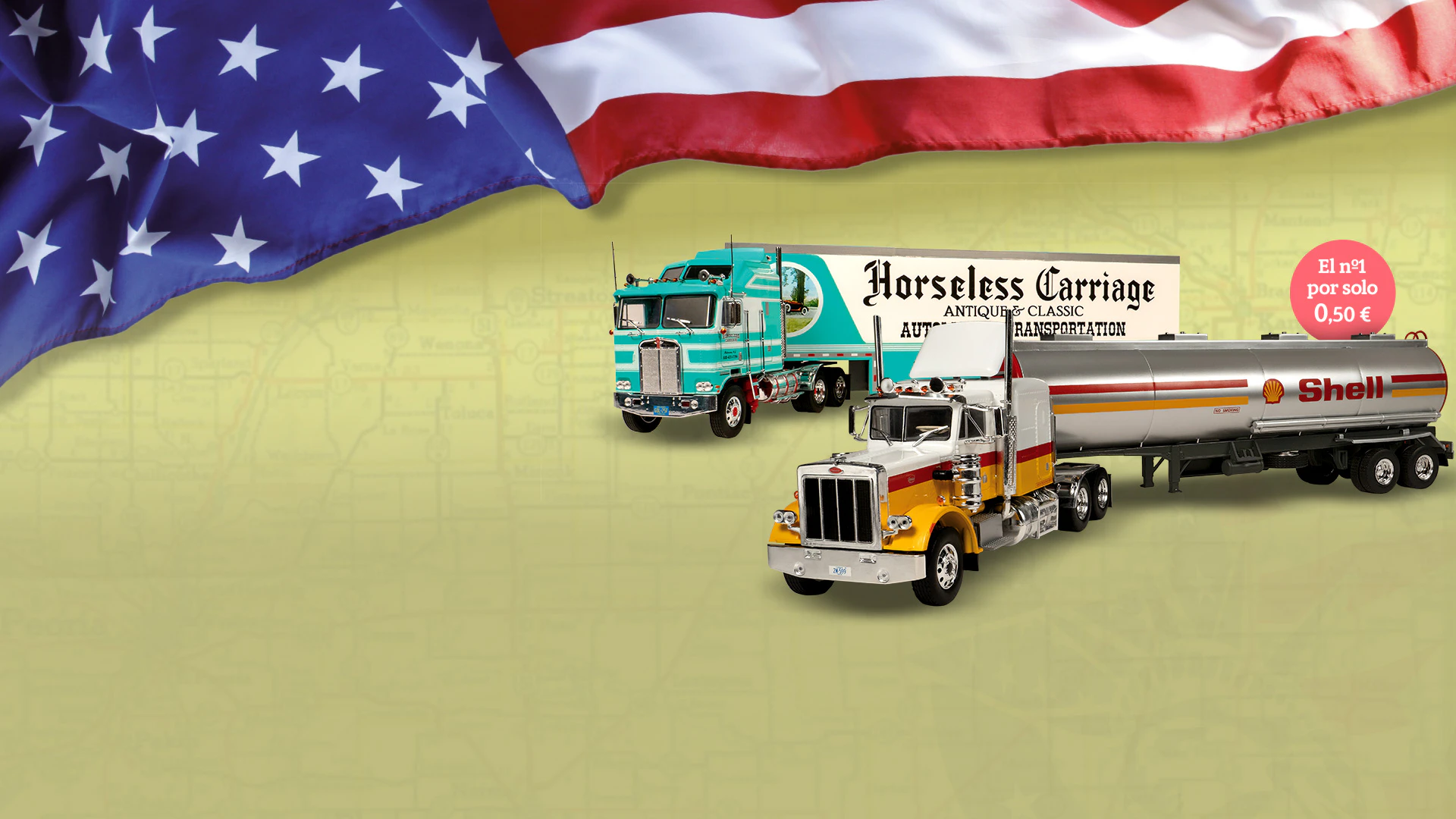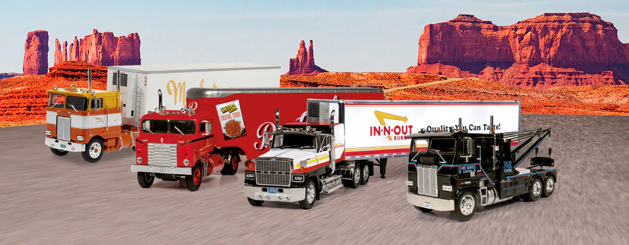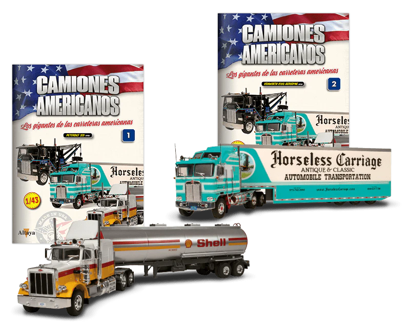 Potentes, fastuosos, impresionantes... Ahora, por primera vez, los camiones americanos más emblemáticos de todos los tiempos a escala 1/43 en una ¡colección exclusiva!