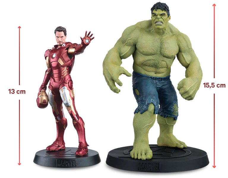Las representaciones de los personajes han sido creadas digitalmente por especialistas antes de ser reproducidas en resina metálica de alta calidad y pintadas a mano. Cada personaje ha sido recreado minuciosamente, imitando su aspecto en una película específica. Tendrás a Iron Man y el Capitán América tal y como aparecen en Los Vengadores.