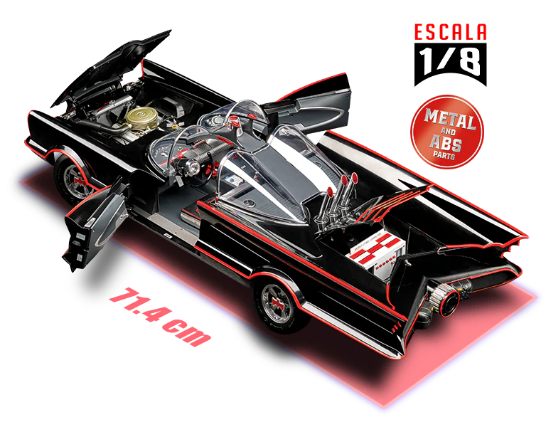 El modelo es una réplica detallada de uno de los automóviles más famosos de la historia. A partir de estudios exhaustivos del modelo original y del automóvil de la serie Batman real, el modelo está increíblemente detallado e incluye los numerosos complementos que ayudaban a este dúo de superhéroes en su lucha contra el crimen.