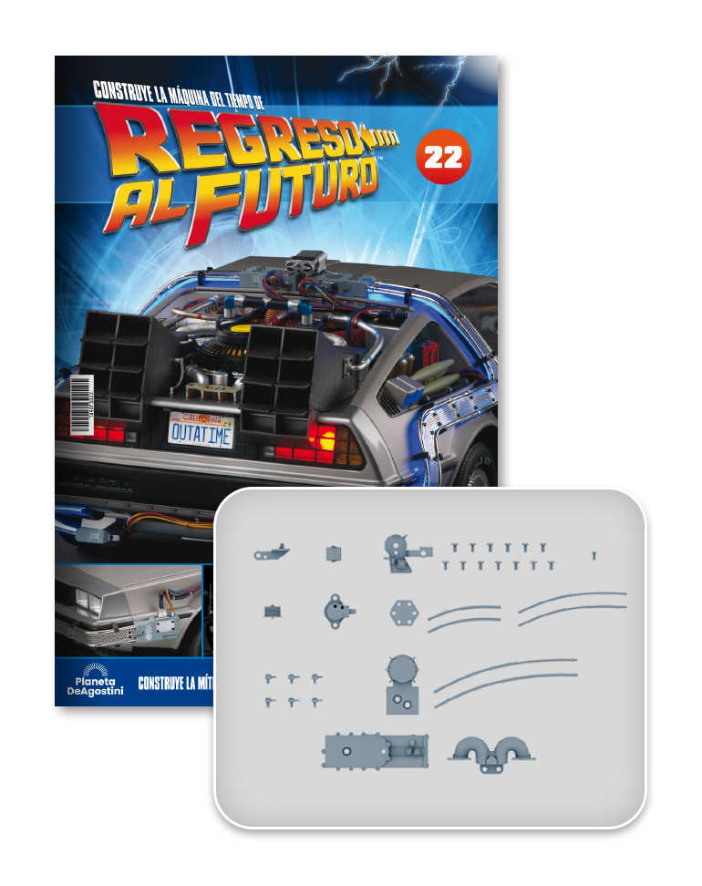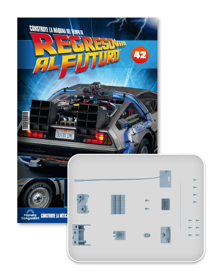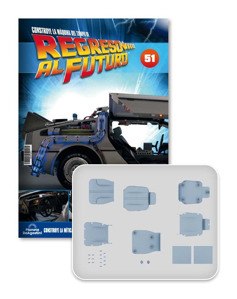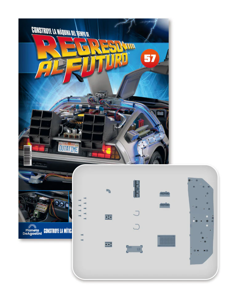 La colección de DELOREAN, EL COCHE DE REGRESO AL FUTURO, consta de 158 entregas + 6 archivadores, compuestas por un fascículo + piezas de montaje.