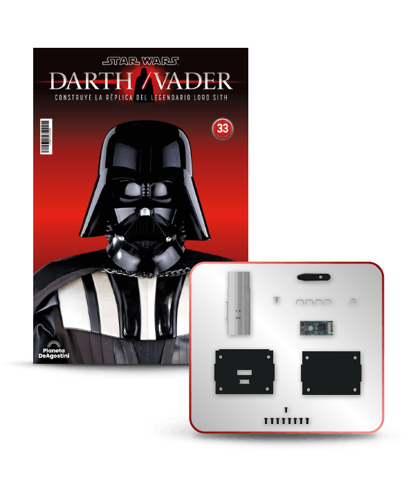 Este modelo a escala 1/2 se inspira en el Darth Vader que aparece en Star Wars: El Imperio Contraataca, incluyendo su casco y el icónico sable láser de color rojo. El modelo también presenta efectos de sonido, como su inconfundible respiración y reproduce algunas de las frases más famosas del Lord Sith en las películas. Además, cada entrega de tu maqueta irá acompañada de un completo contenido editorial con detalles increíbles de la saga.