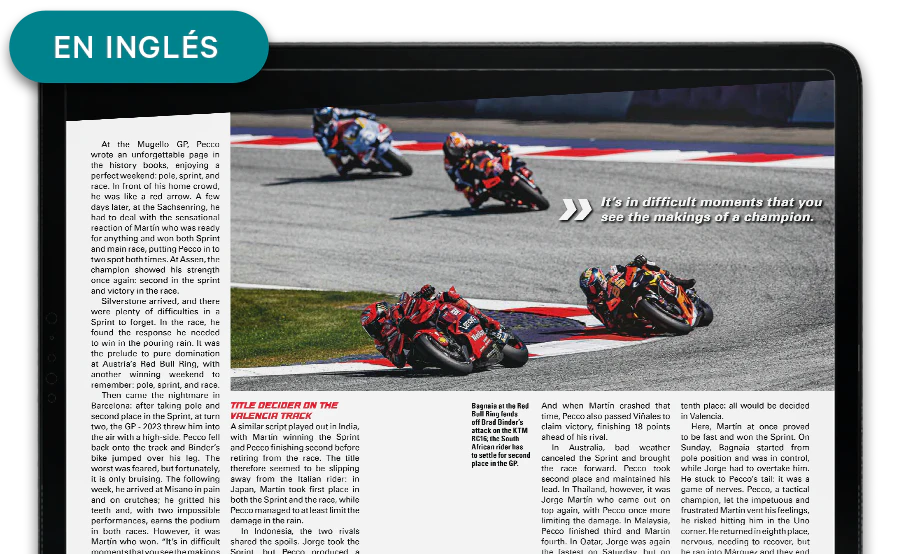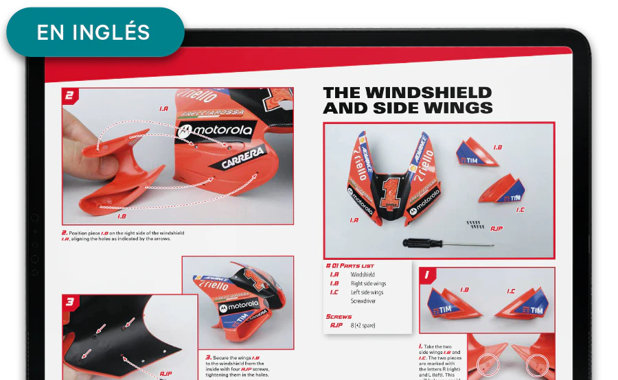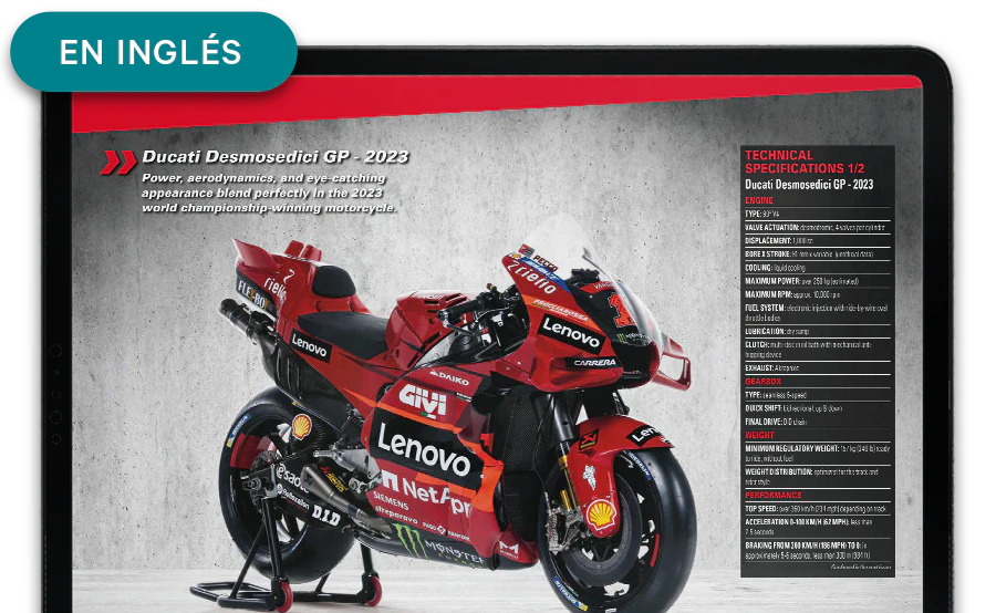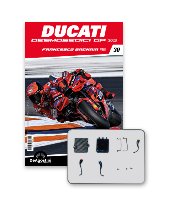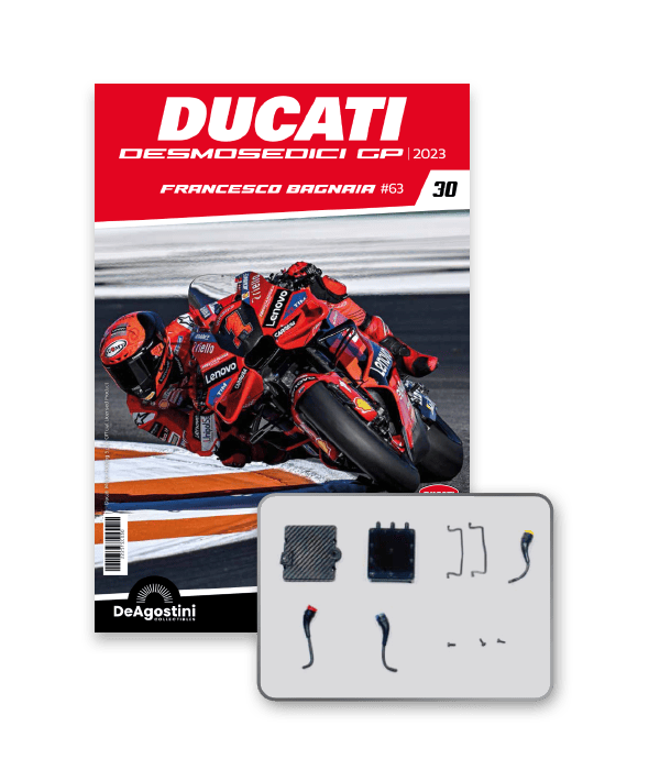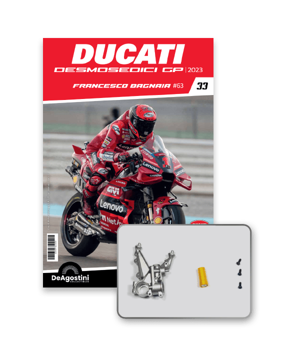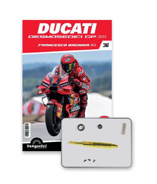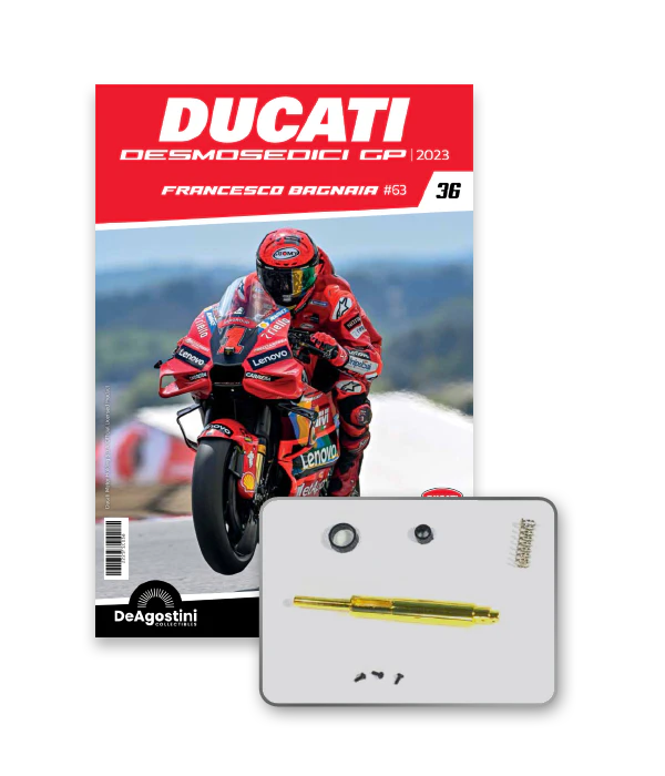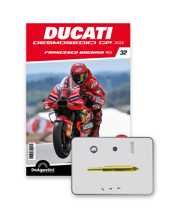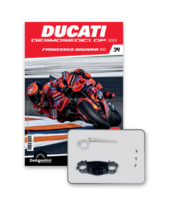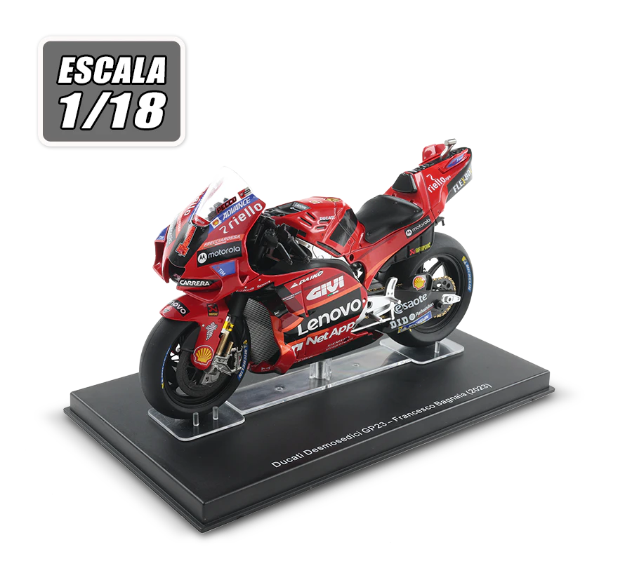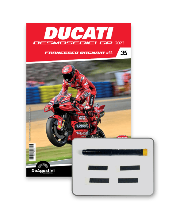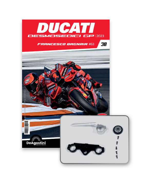 Construye la moto Campeona del Mundo: ¡una exclusiva y fiel réplica a escala 1/4 de la legendaria DUCATI DESMOSEDICI GP23 de FRANCESCO BAGNAIA! La moto que confirmó la maestría tecnológica de un motor V4 de gran potencia: la máquina que evolucionó la GP22 para repetir el dominio en los circuitos y despertó, además, emociones inolvidables. El inicio del reinado Ducati en el Motociclismo, que a día de hoy disfrutamos.