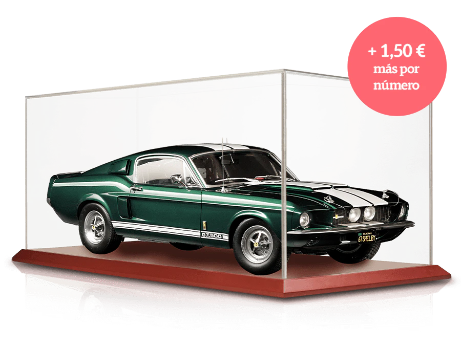 Con la Oferta Premium, por solo 1,50€ adicionales por entrega, a partir de la entrega 4, recibirás una exclusiva vitrina, elegante, ligera y muy resistente. Un complemento imprescindible que te permitirá admirar la maqueta de tu FORD MUSTANG SHELBY GT500®.