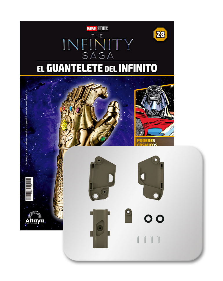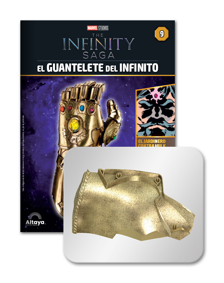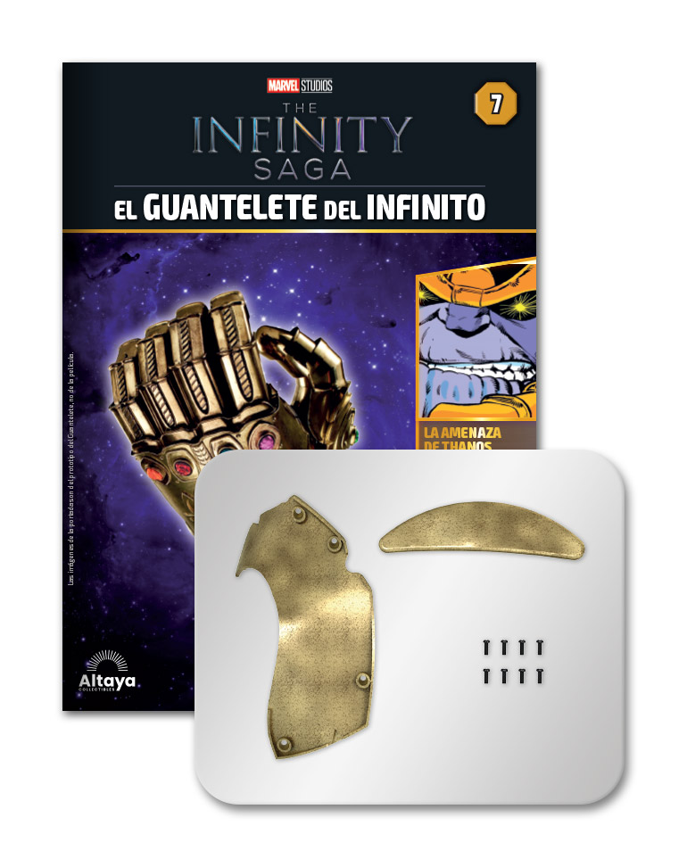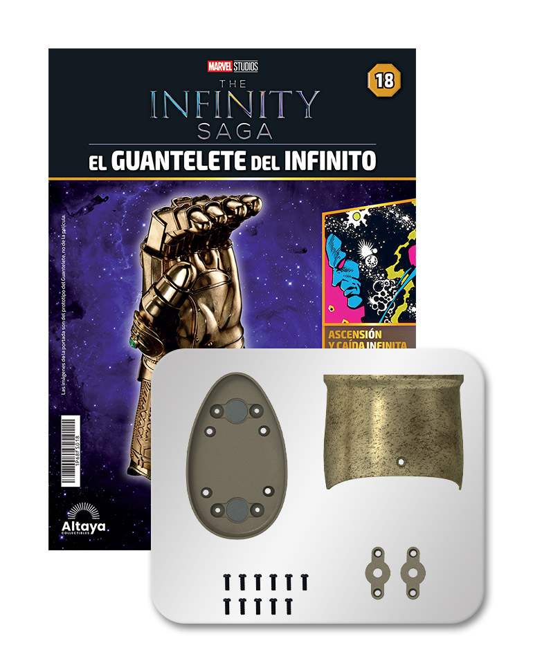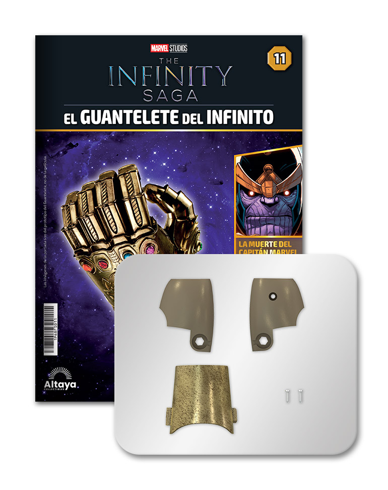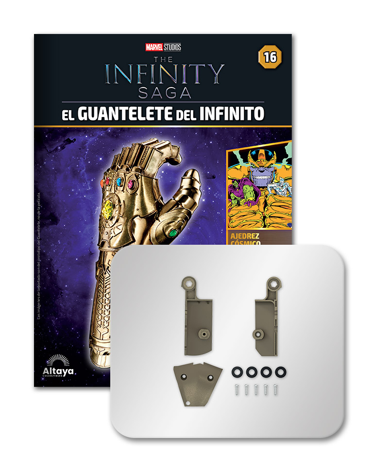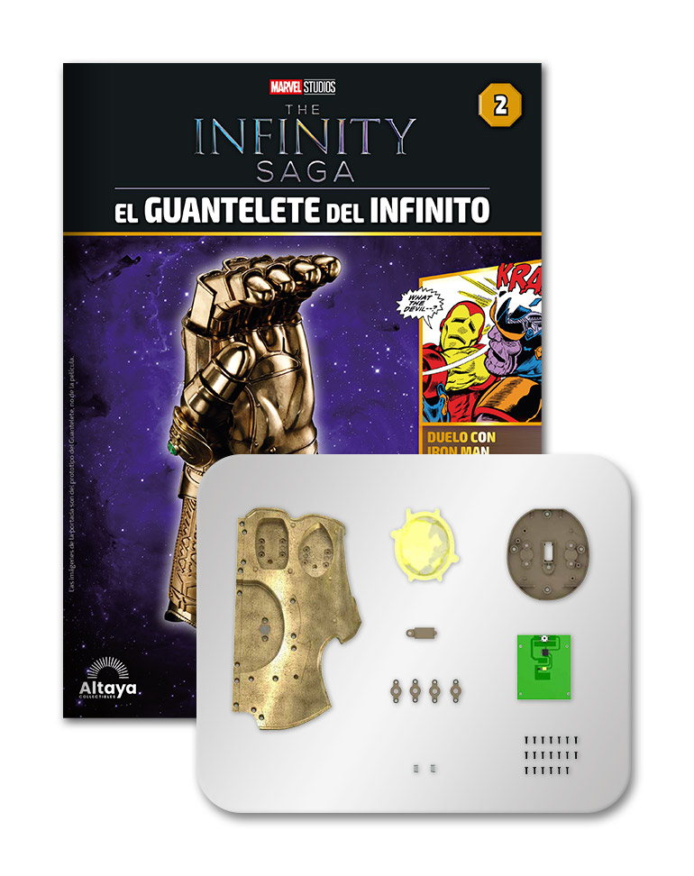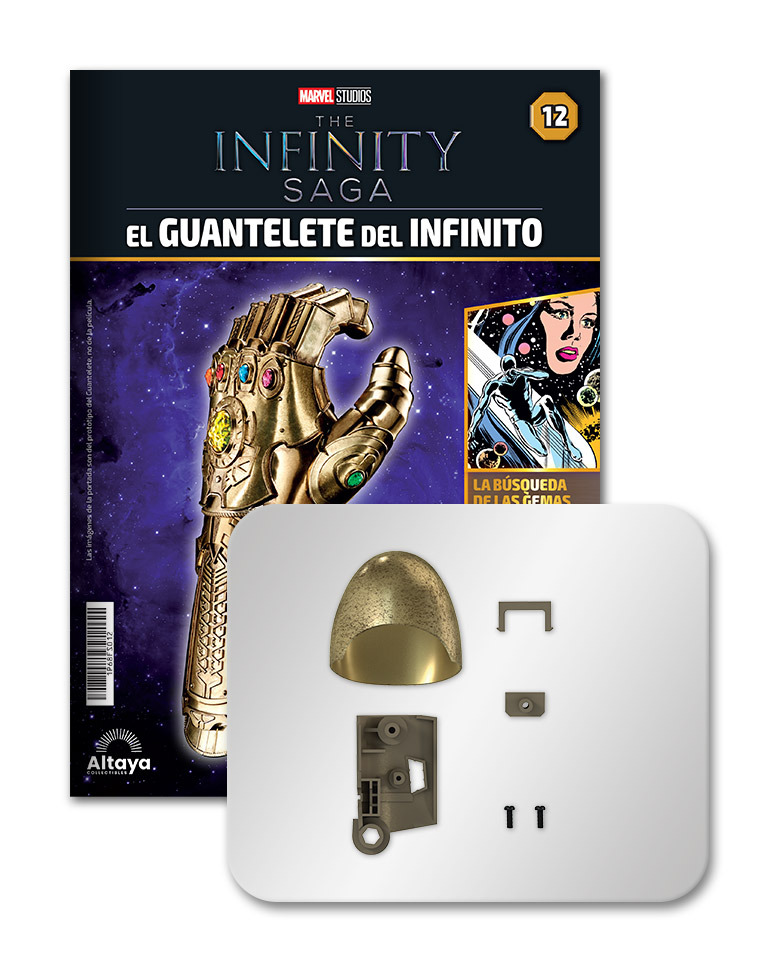 En este número se recibe la primera pieza de lo que será la palma del Guantelete del Infinito, cuyo montaje continuará en próximas entregas.