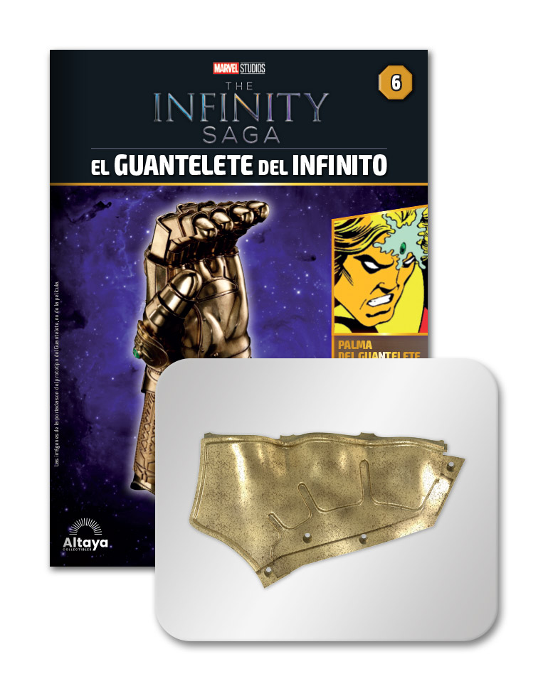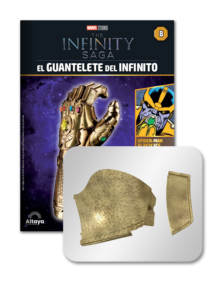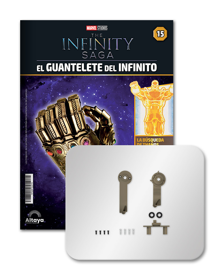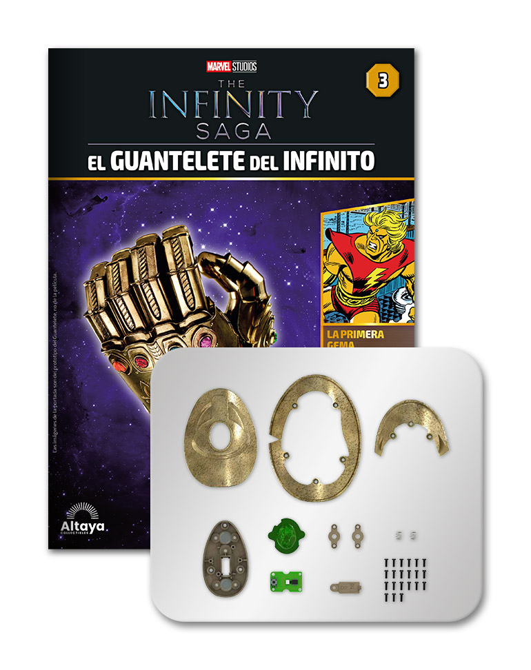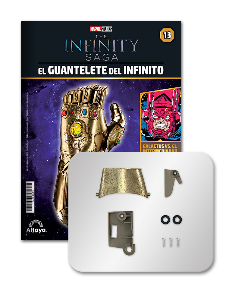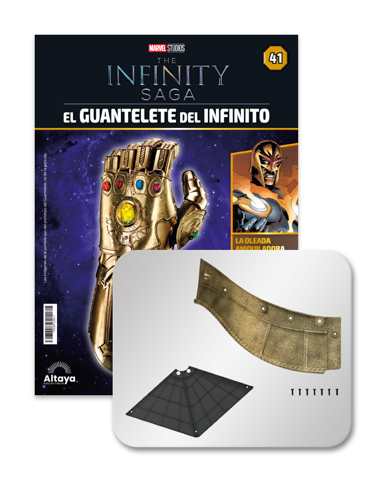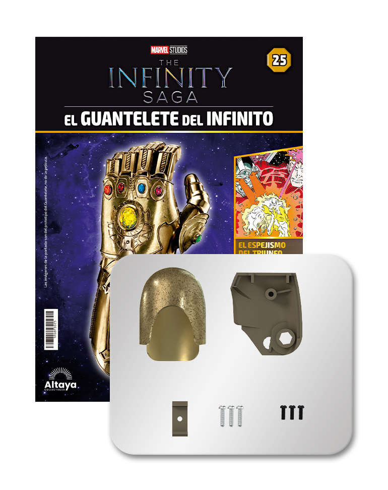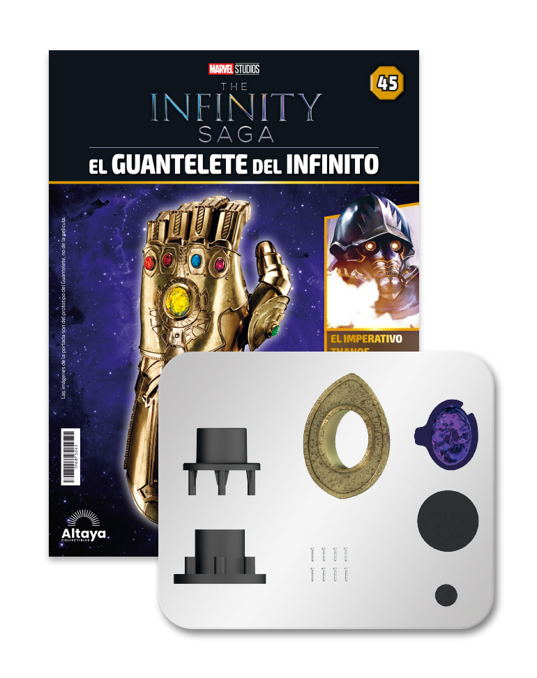En este número se recibe la primera pieza de lo que será la palma del Guantelete del Infinito, cuyo montaje continuará en próximas entregas.