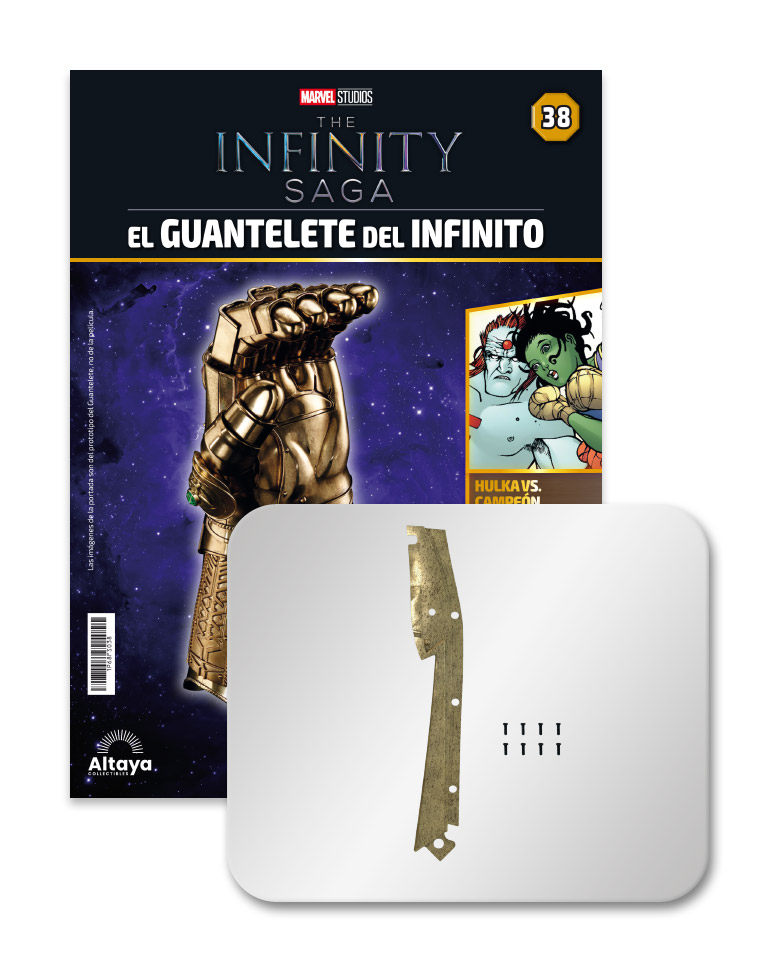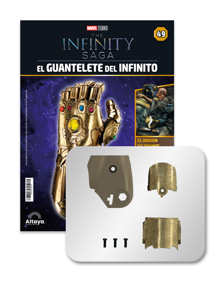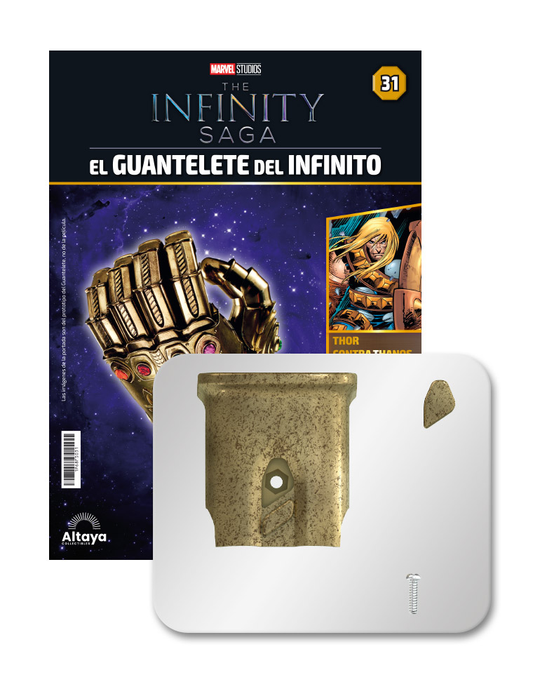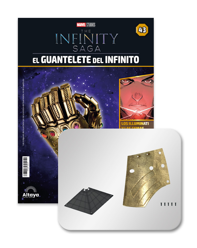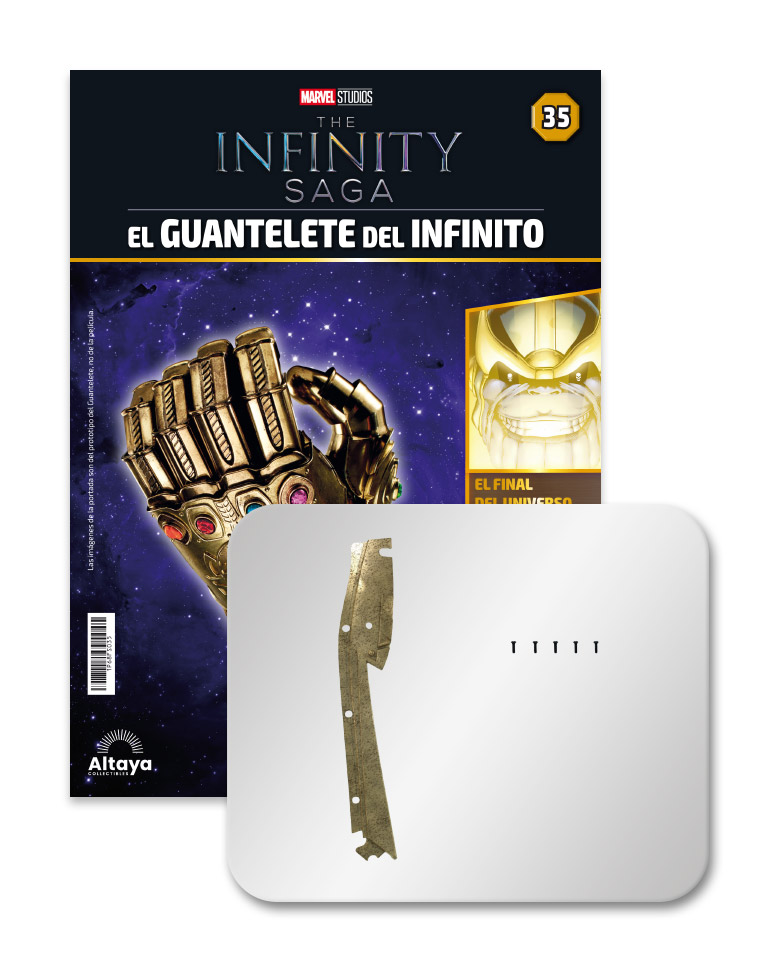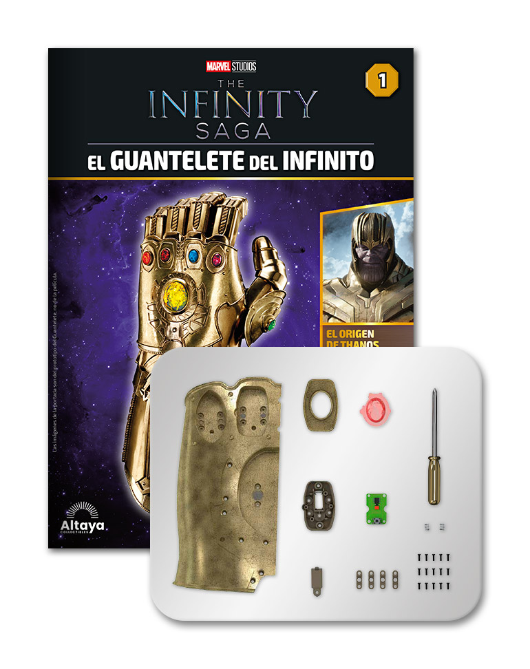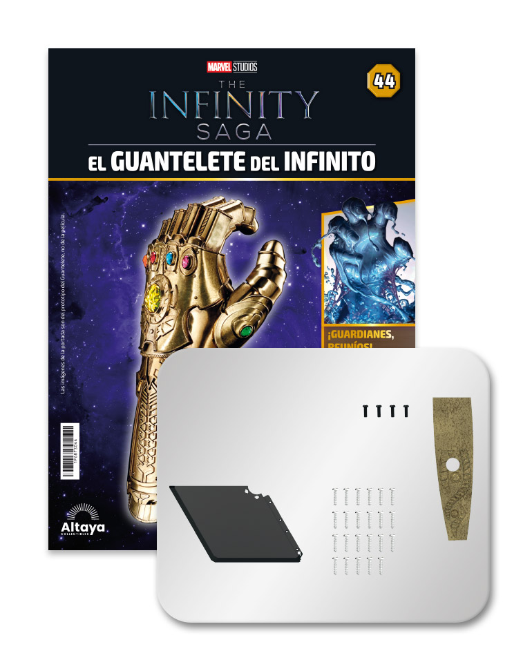 En este número se recibe la primera pieza de lo que será la palma del Guantelete del Infinito, cuyo montaje continuará en próximas entregas.