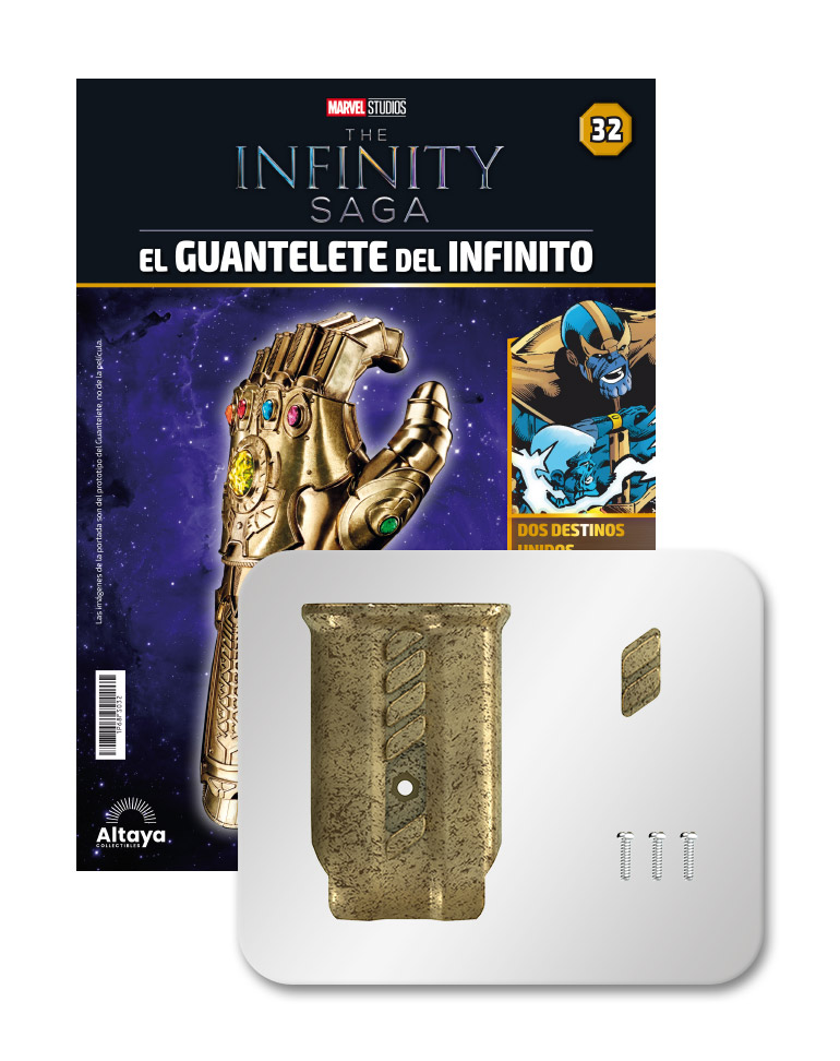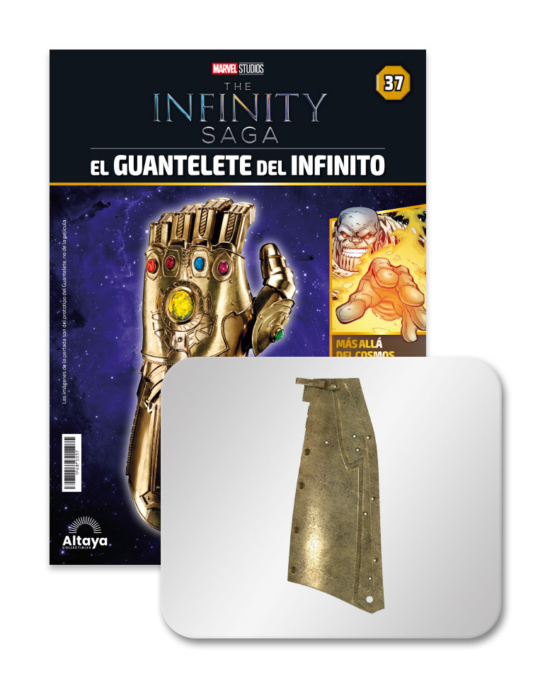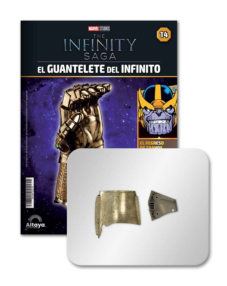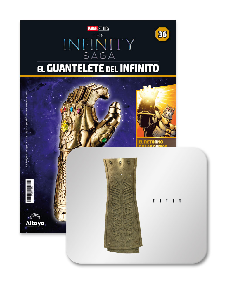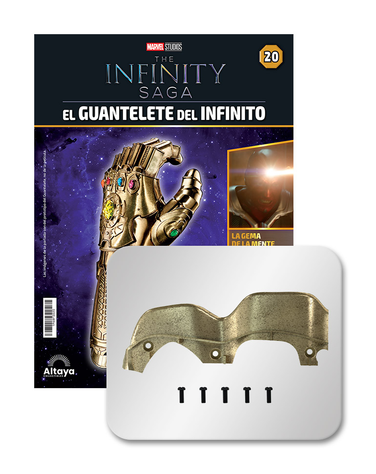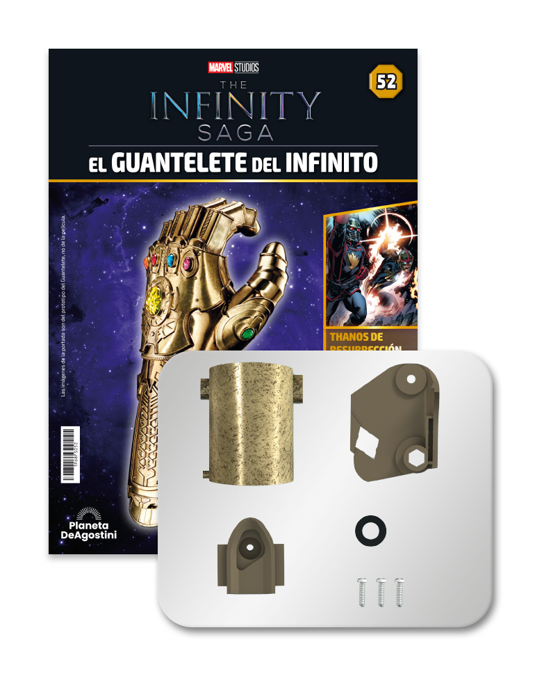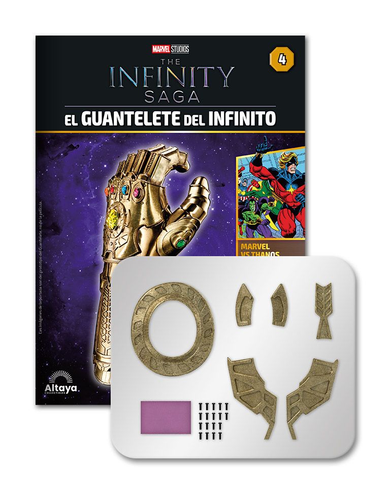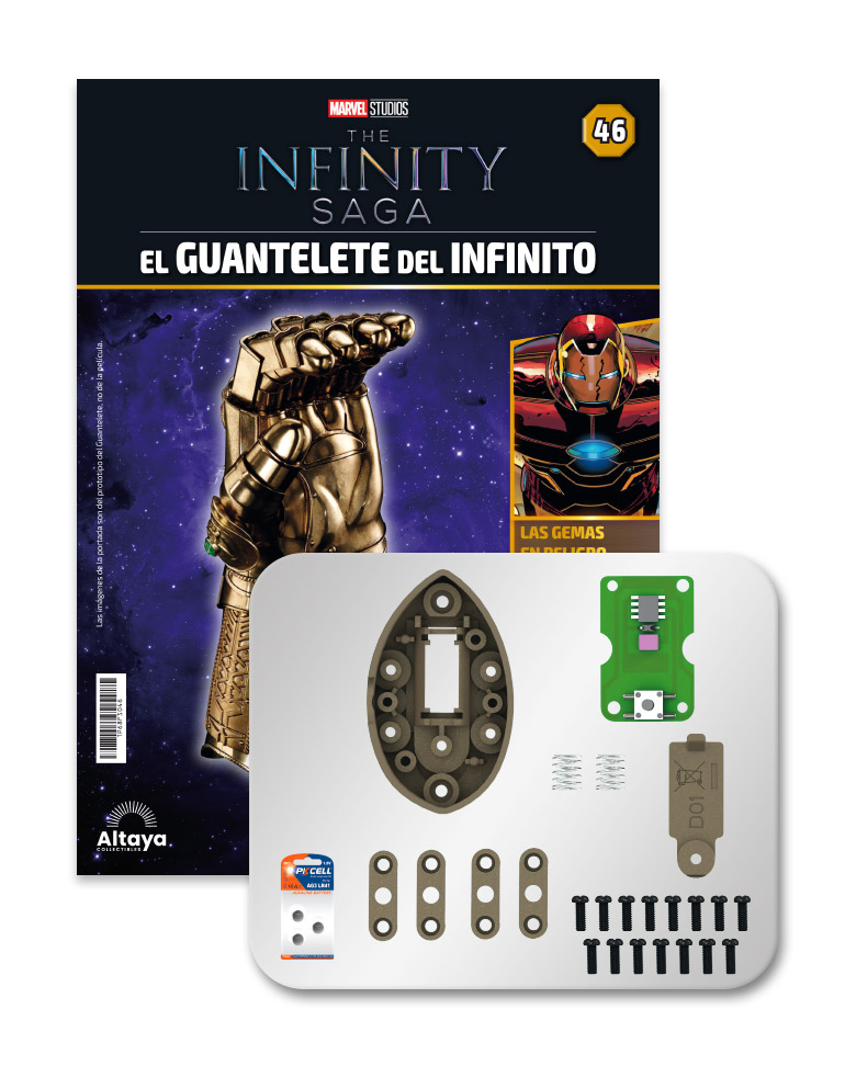 En este número se recibe la primera pieza de lo que será la palma del Guantelete del Infinito, cuyo montaje continuará en próximas entregas.