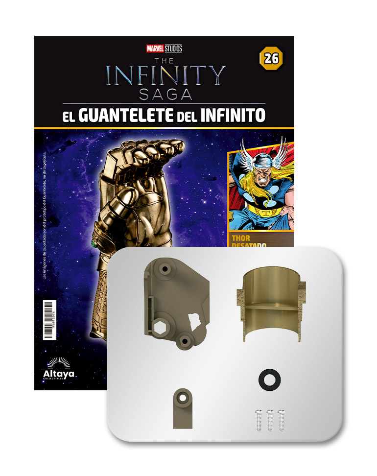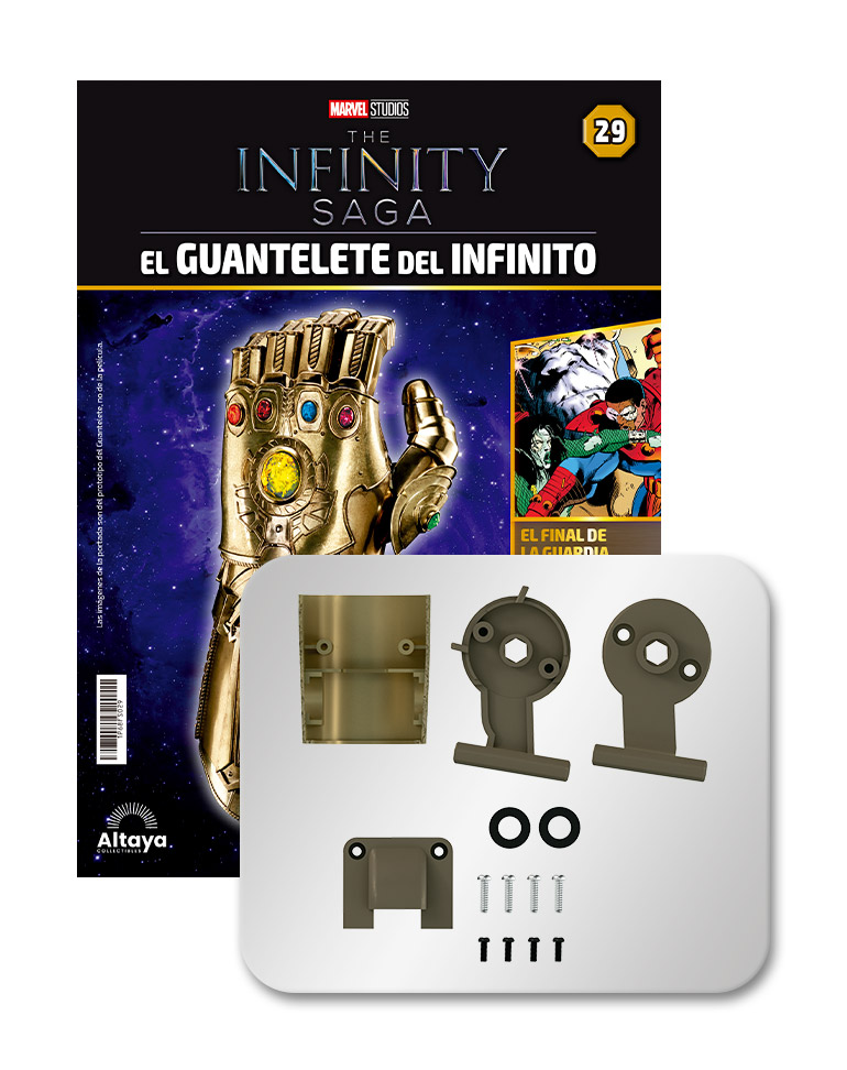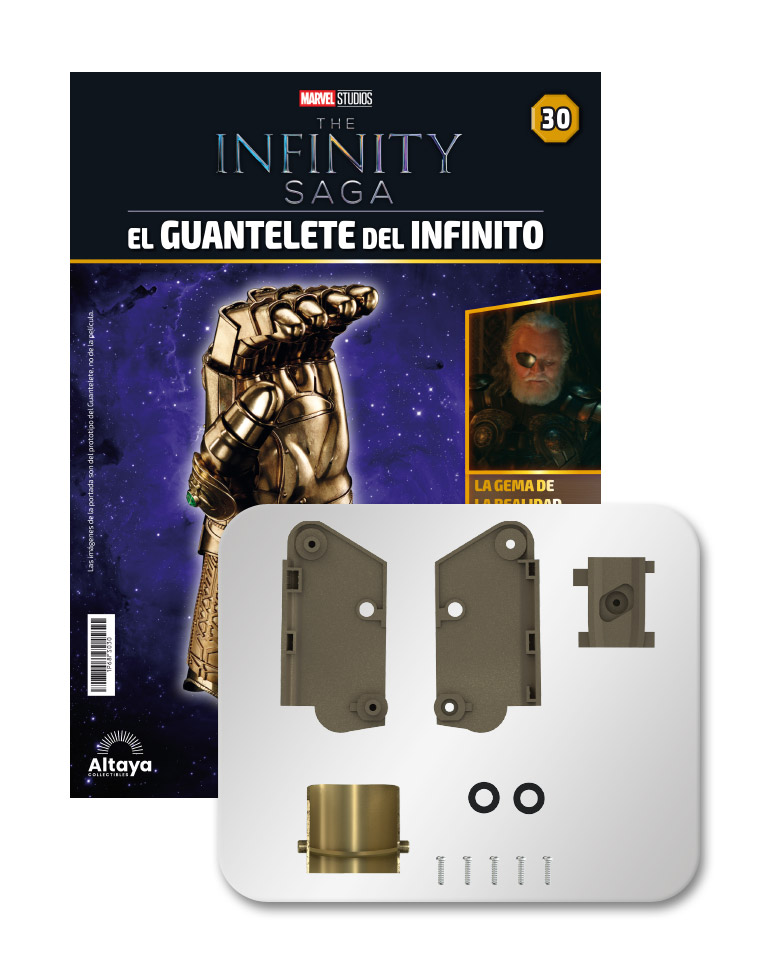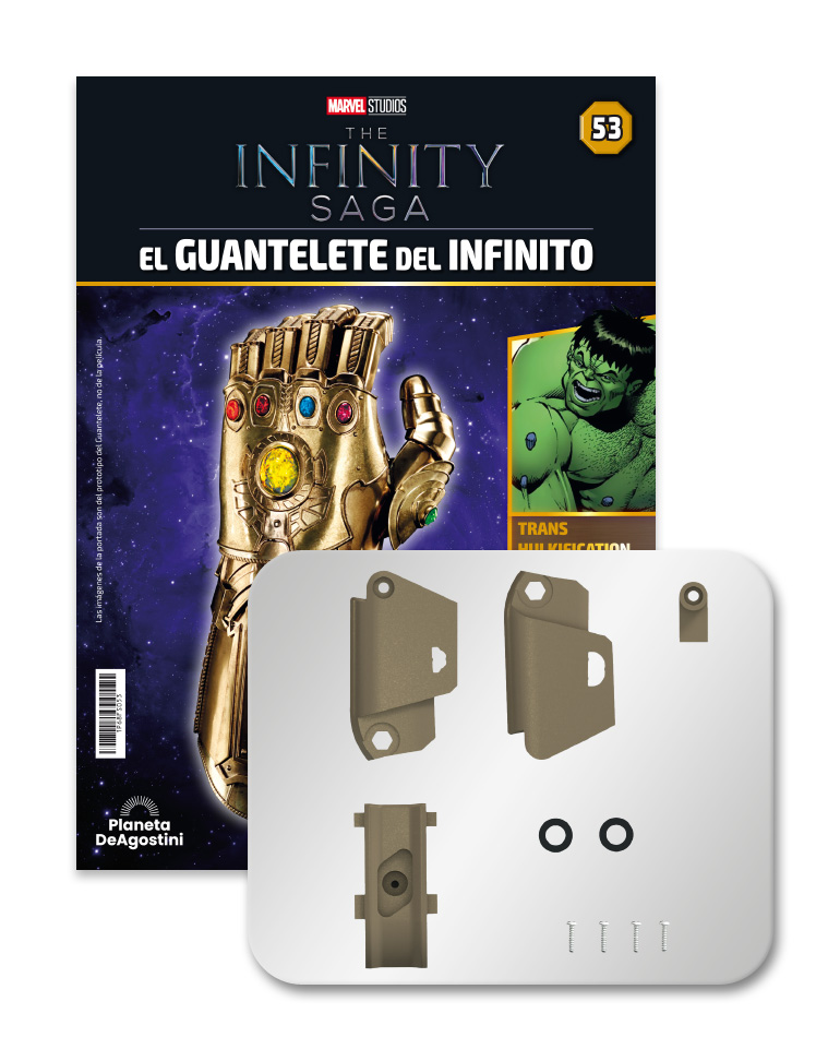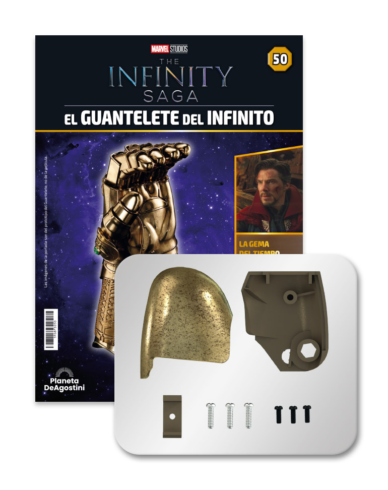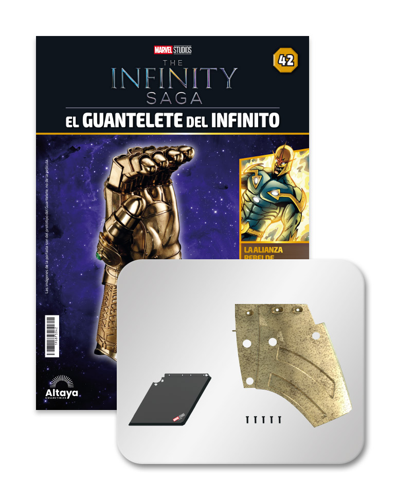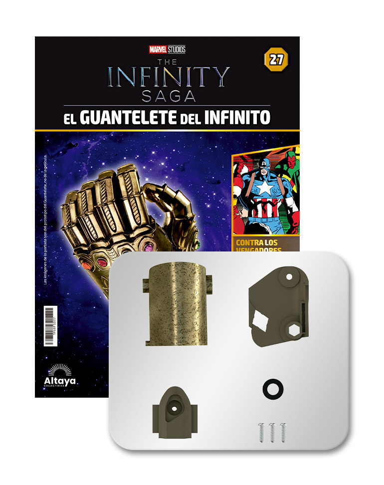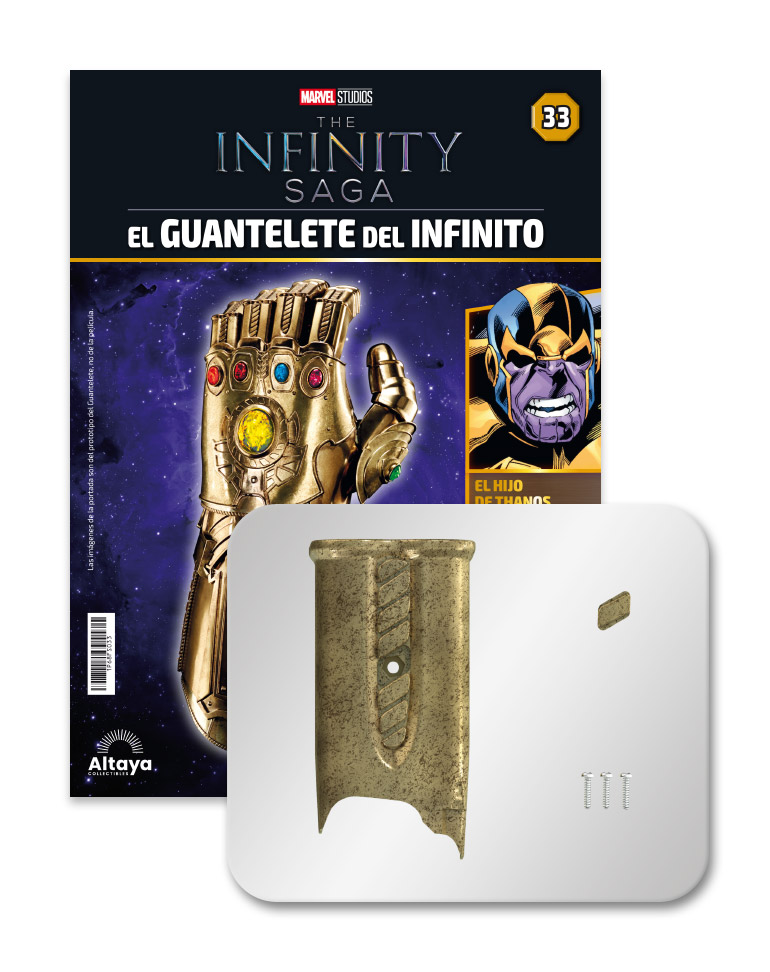 En este número se recibe la primera pieza de lo que será la palma del Guantelete del Infinito, cuyo montaje continuará en próximas entregas.