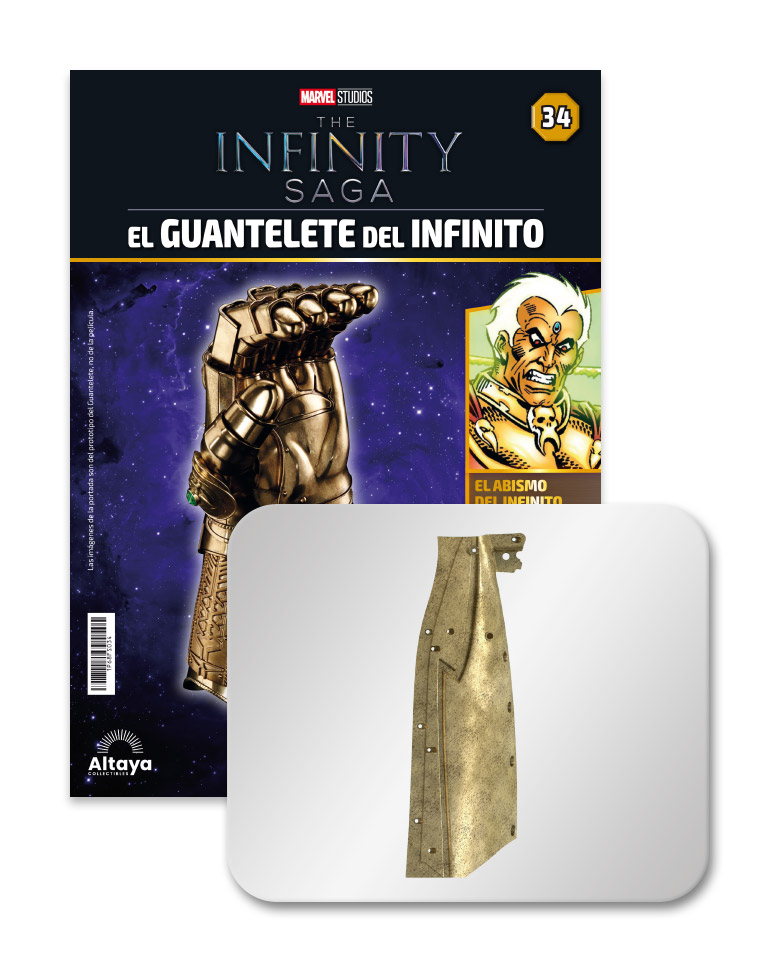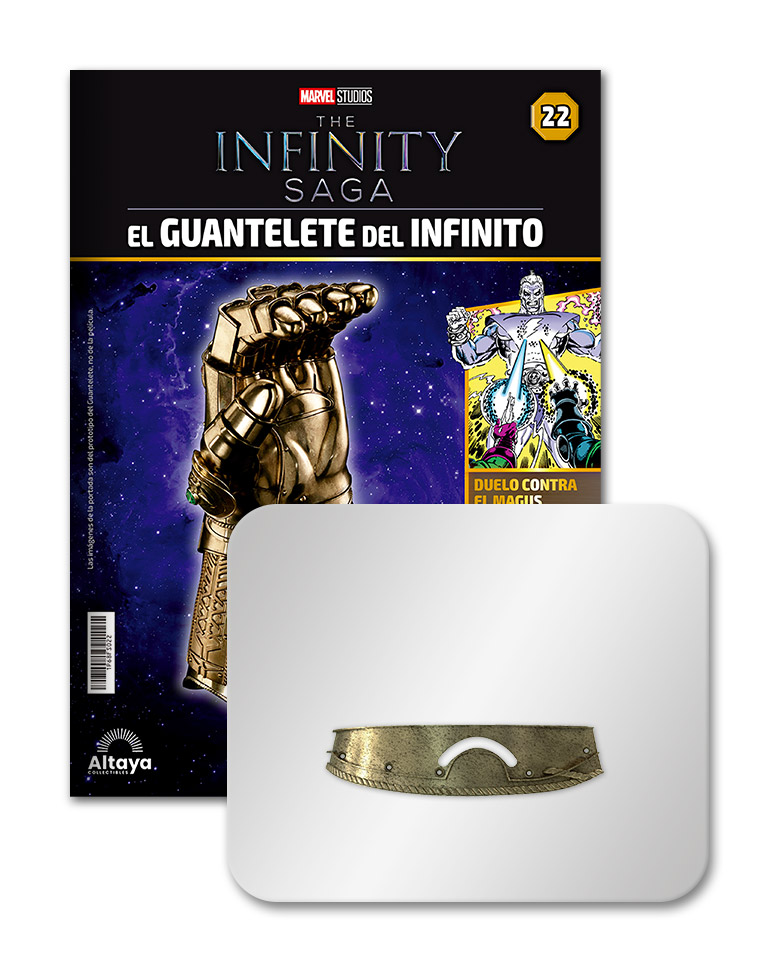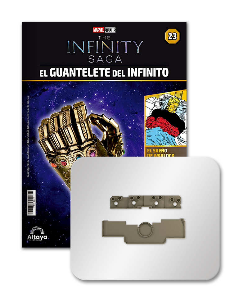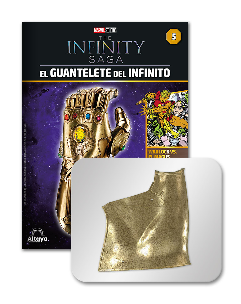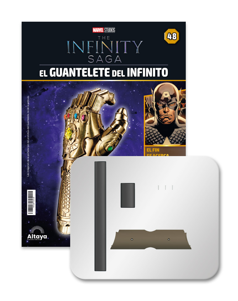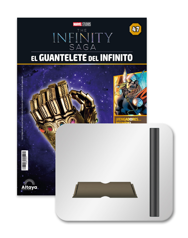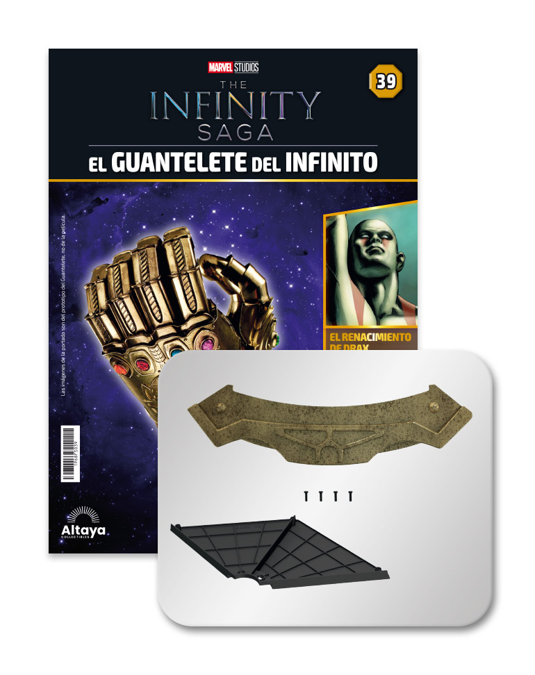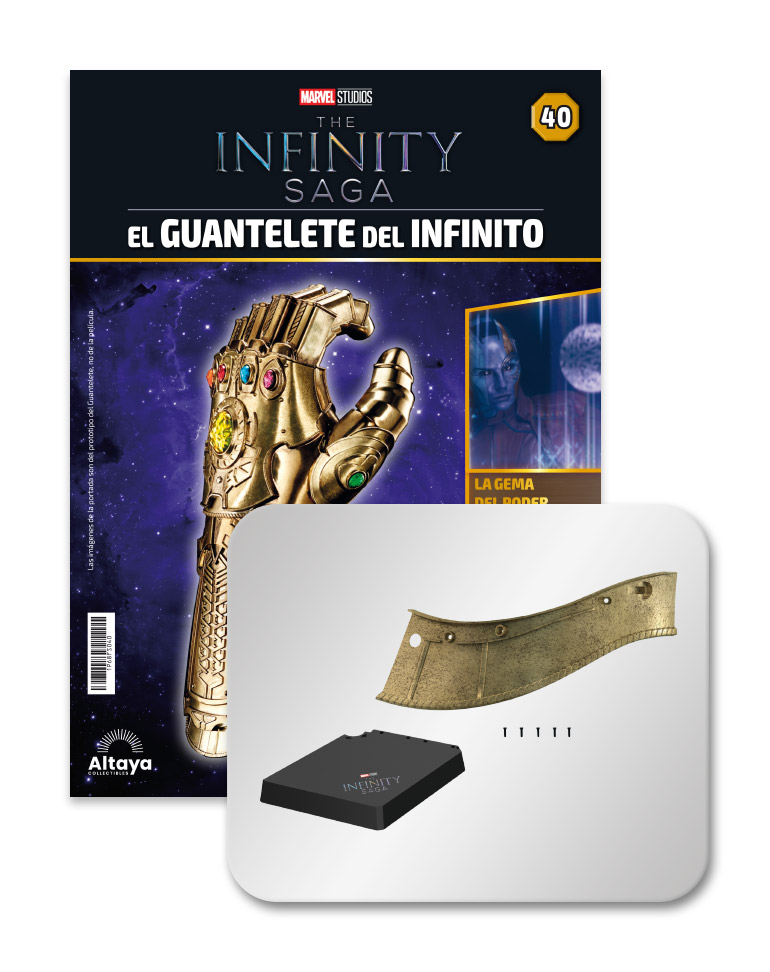 En este número se recibe la primera pieza de lo que será la palma del Guantelete del Infinito, cuyo montaje continuará en próximas entregas.