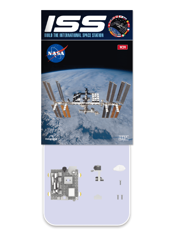 Recibe las piezas de esta base iluminada y móntalas al mismo tiempo que la estación. ¡Parecerá que la ISS está realmente en el espacio!
