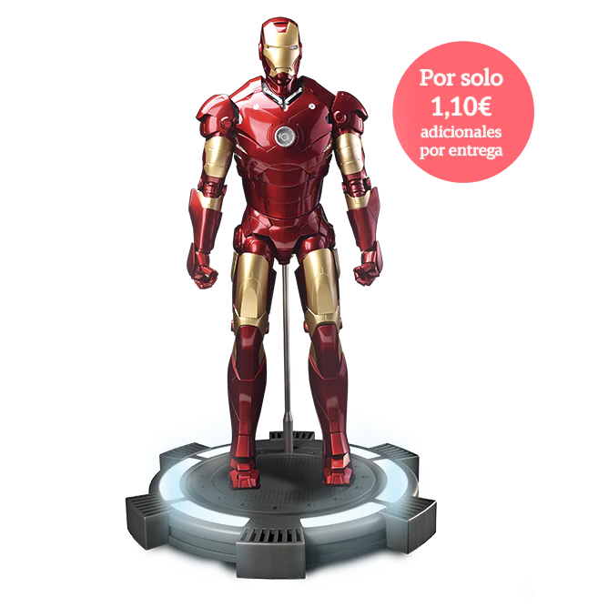 Coloca y sujeta el Iron Man Mark III sobre su base expositora especial de gran tamaño y realizada en metal e inspirada en las películas. Los efectos de luz, además, hacen de la base el complemento perfecto de la colección. Recibe las piezas de la base expositora y constrúyela junto con el Iron Man Mark III.