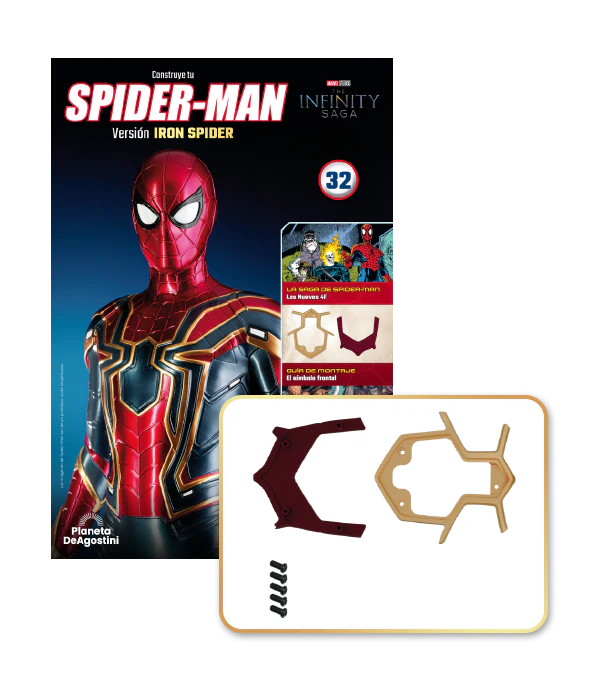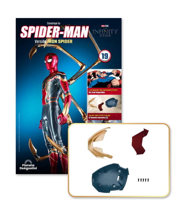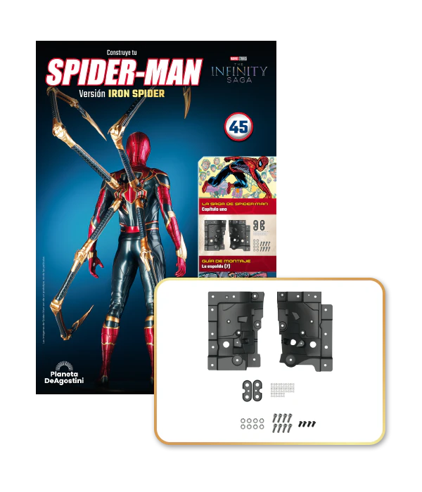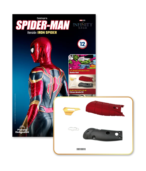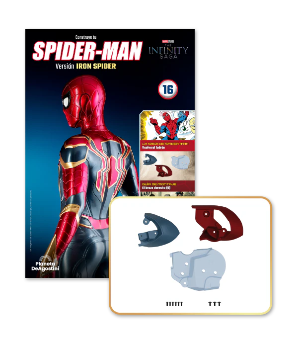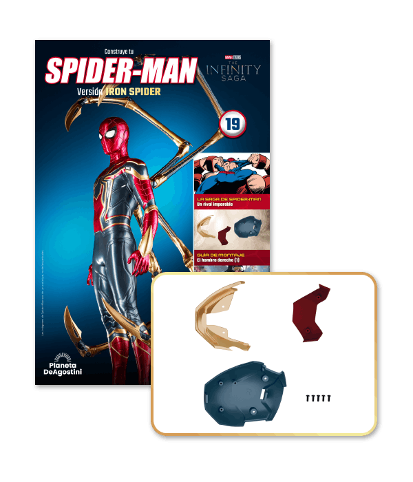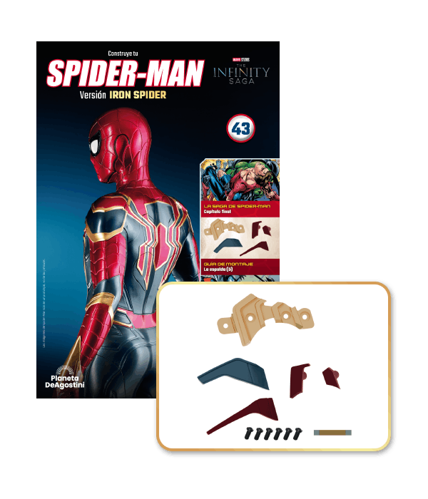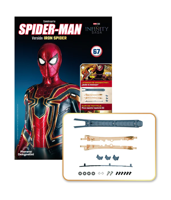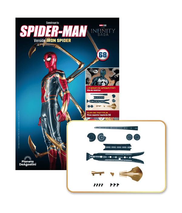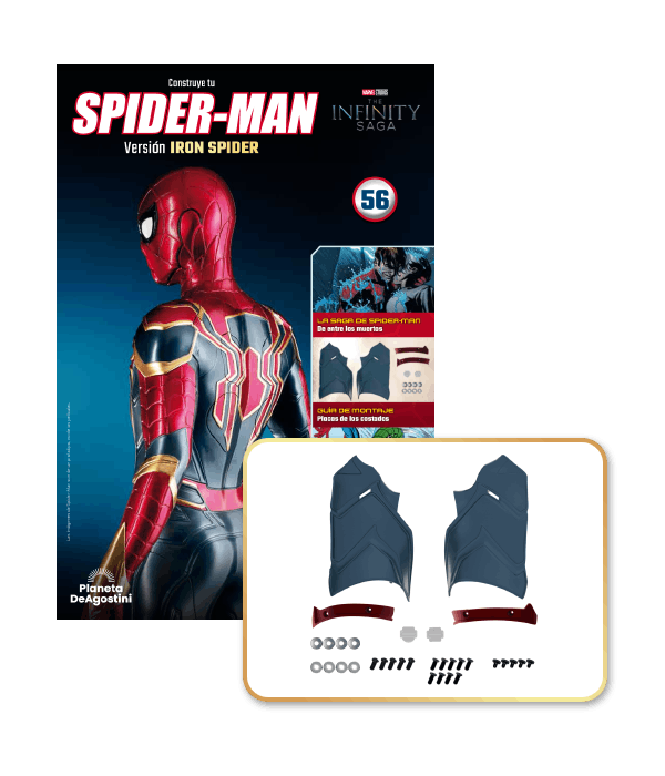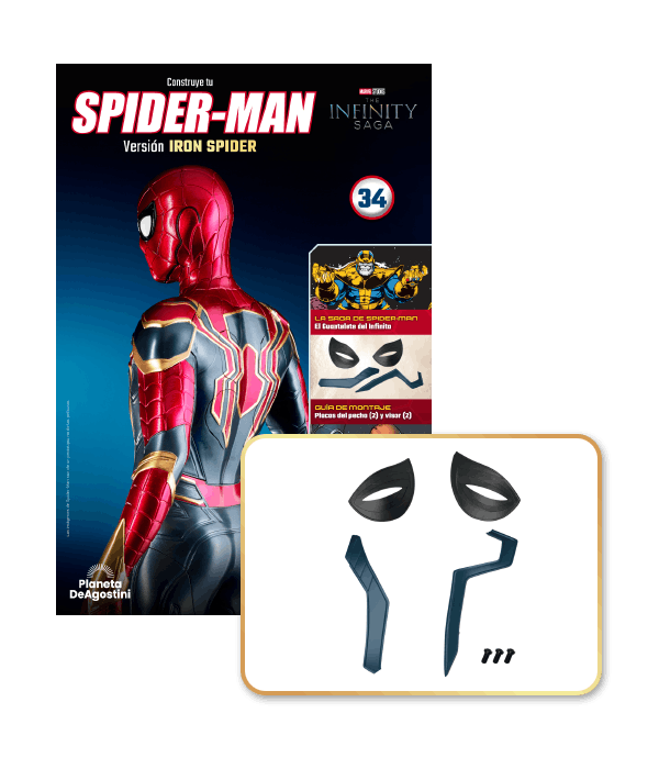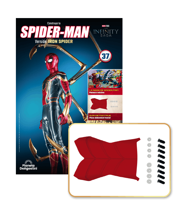 Increíblemente detallada, esta impresionante reproducción a gran escala de la armadura de Iron Spider se ofrece en una nueva colección inédita que ningún fan de Marvel querrá perderse. Además, cada entrega de tu maqueta irá acompañada de un extenso contenido editorial con detalles e ilustraciones increíbles de las películas.