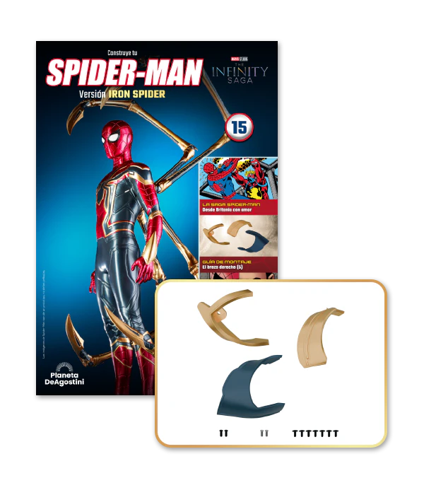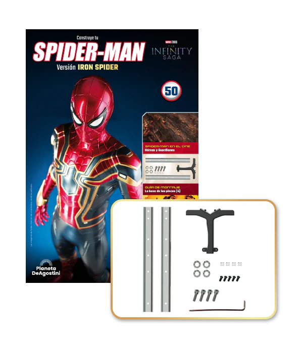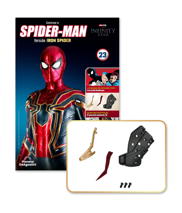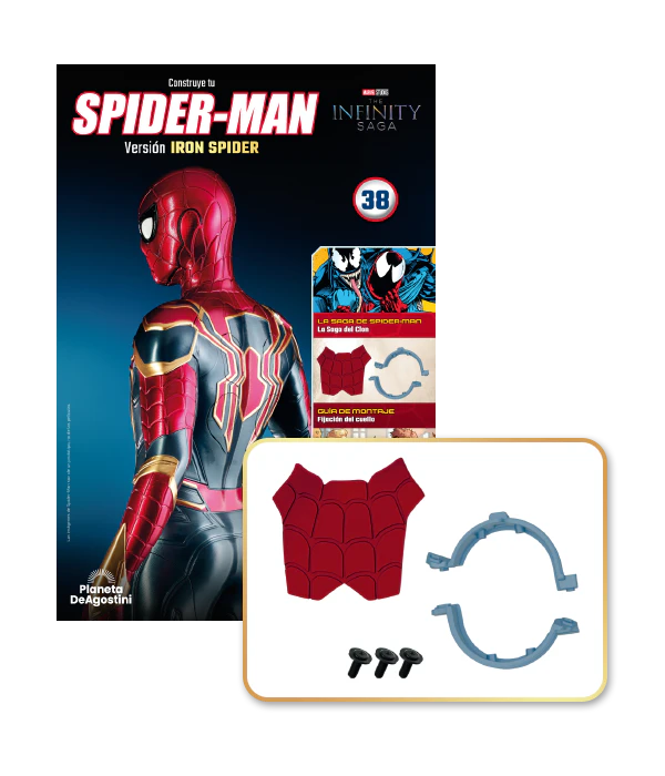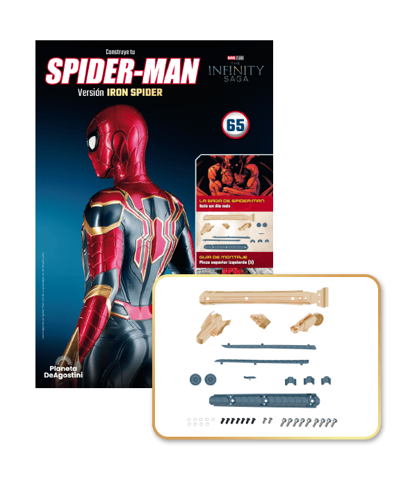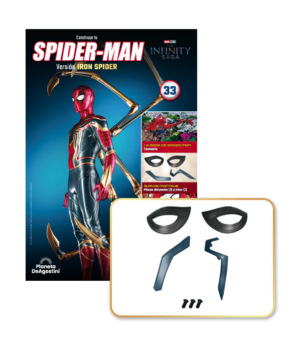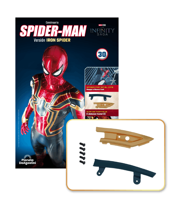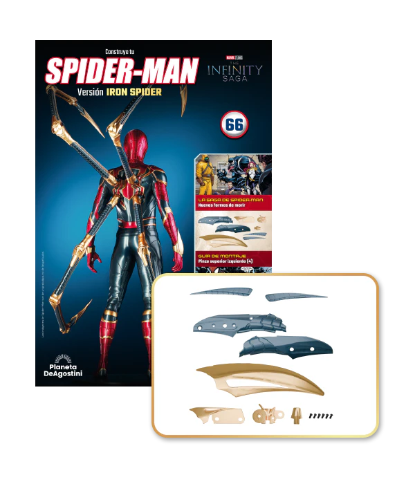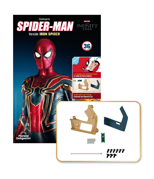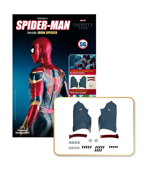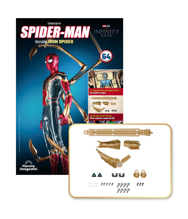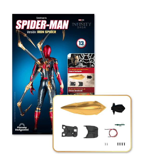 Increíblemente detallada, esta impresionante reproducción a gran escala de la armadura de Iron Spider se ofrece en una nueva colección inédita que ningún fan de Marvel querrá perderse. Además, cada entrega de tu maqueta irá acompañada de un extenso contenido editorial con detalles e ilustraciones increíbles de las películas.