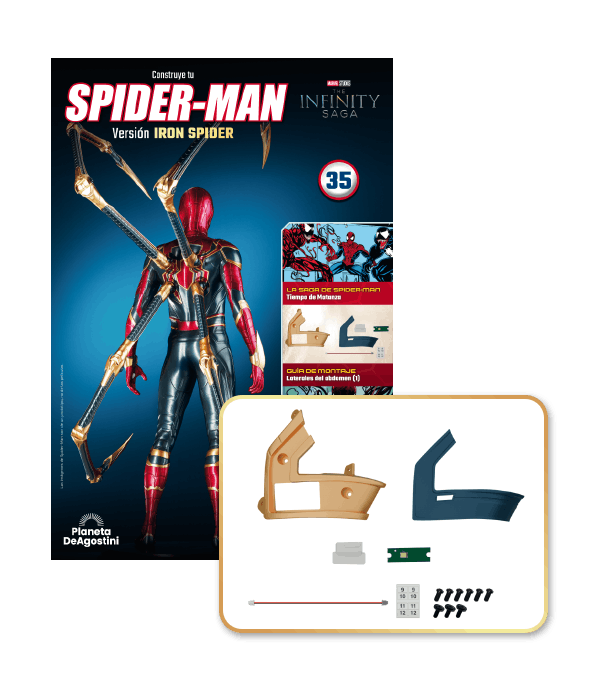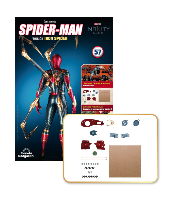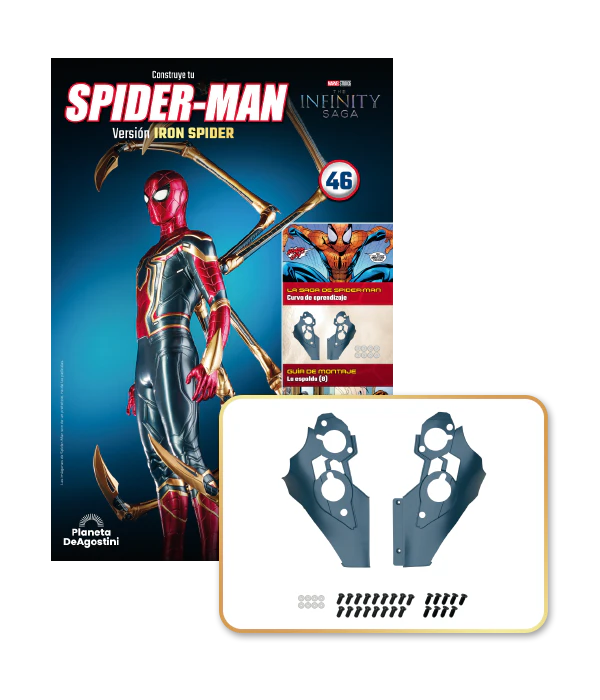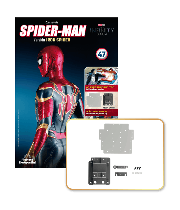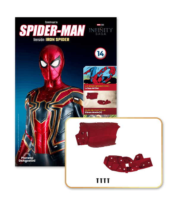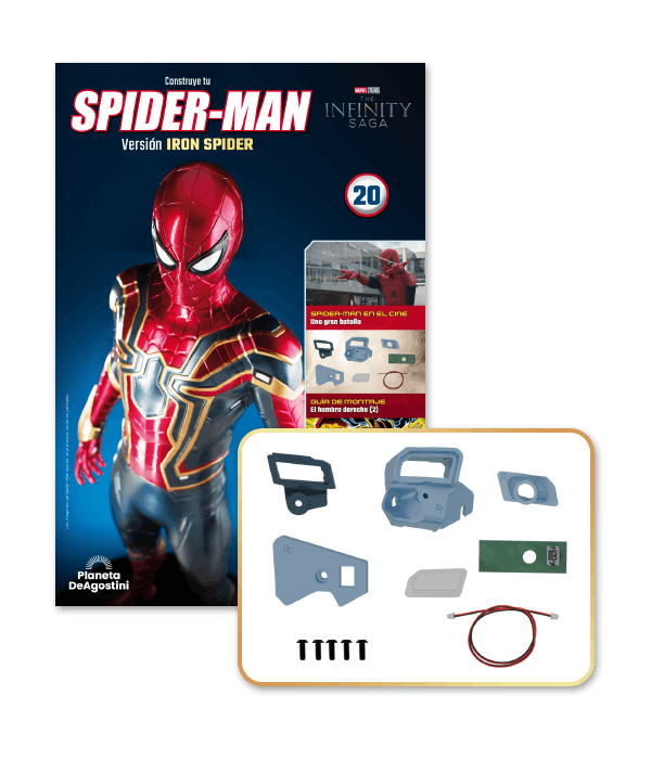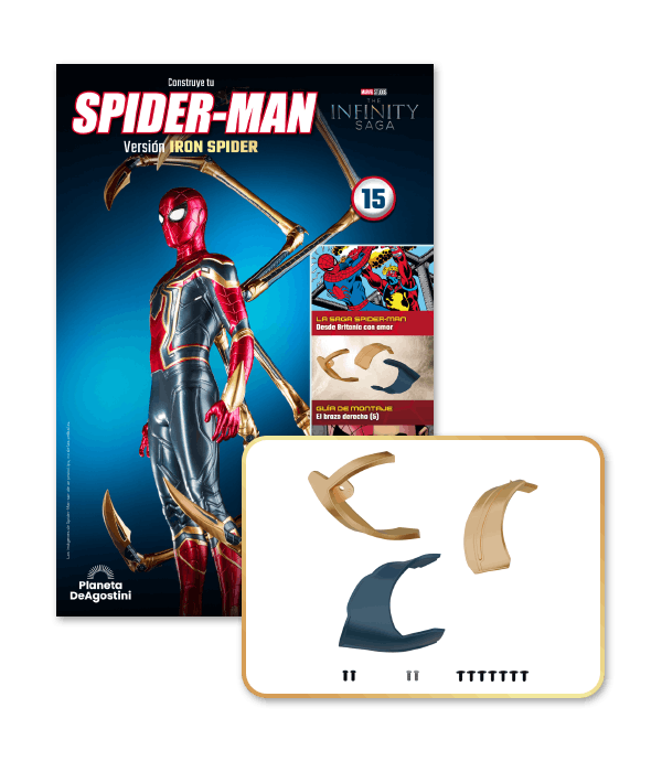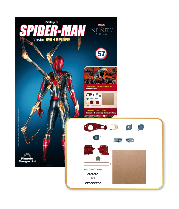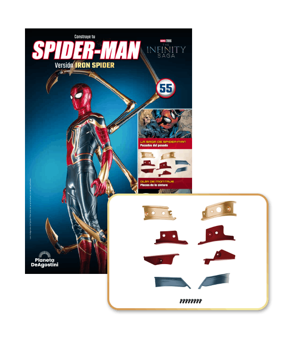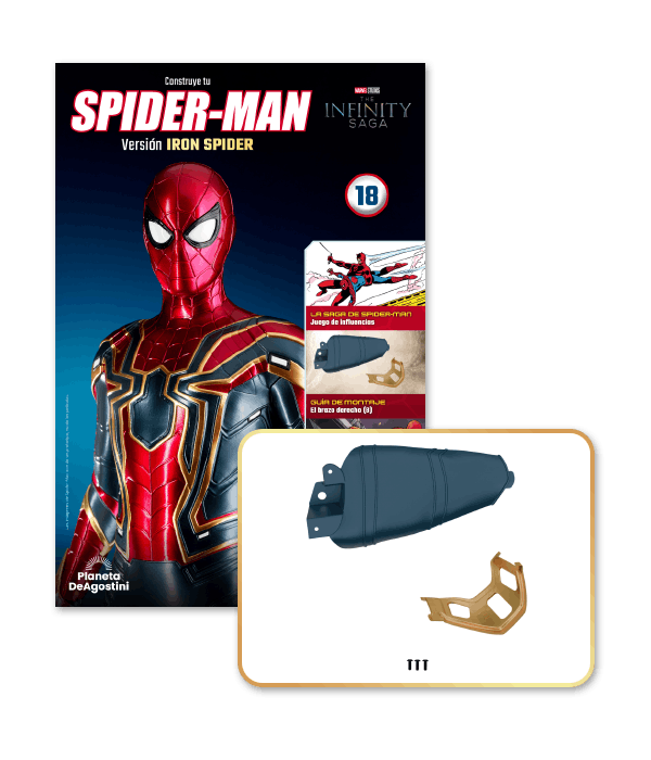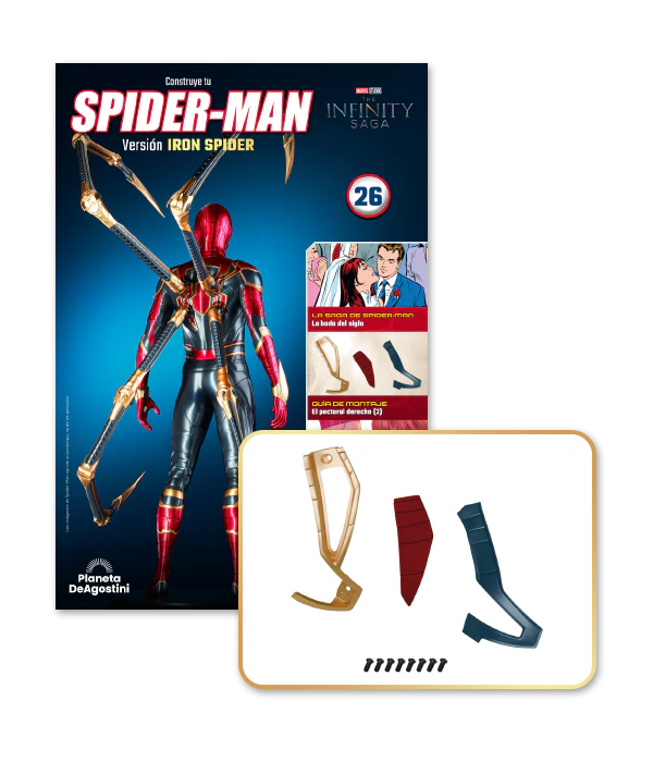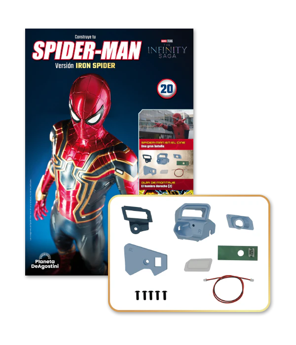 Increíblemente detallada, esta impresionante reproducción a gran escala de la armadura de Iron Spider se ofrece en una nueva colección inédita que ningún fan de Marvel querrá perderse. Además, cada entrega de tu maqueta irá acompañada de un extenso contenido editorial con detalles e ilustraciones increíbles de las películas.