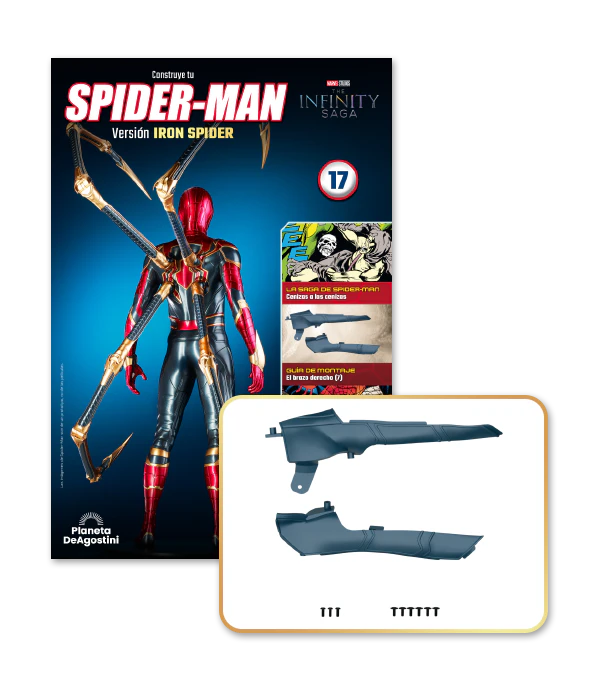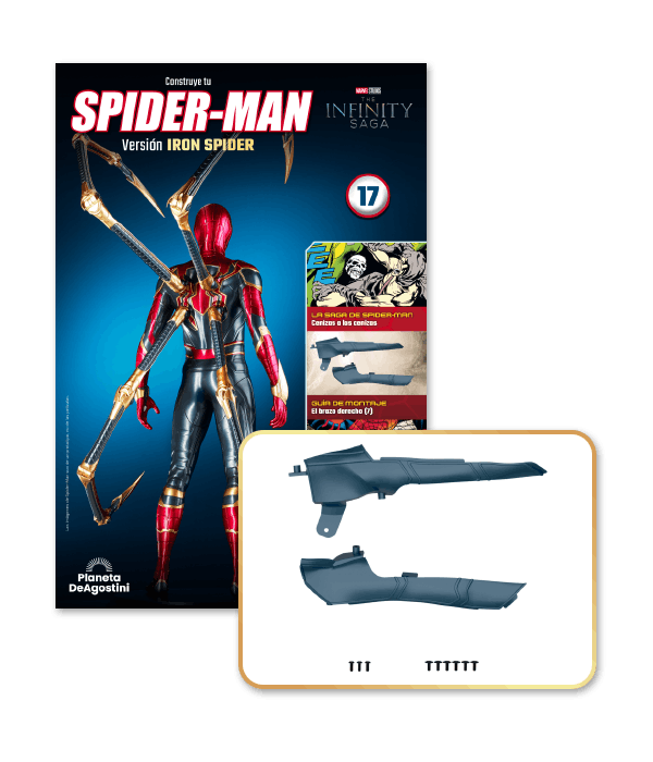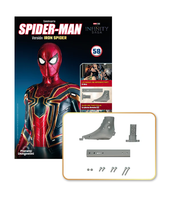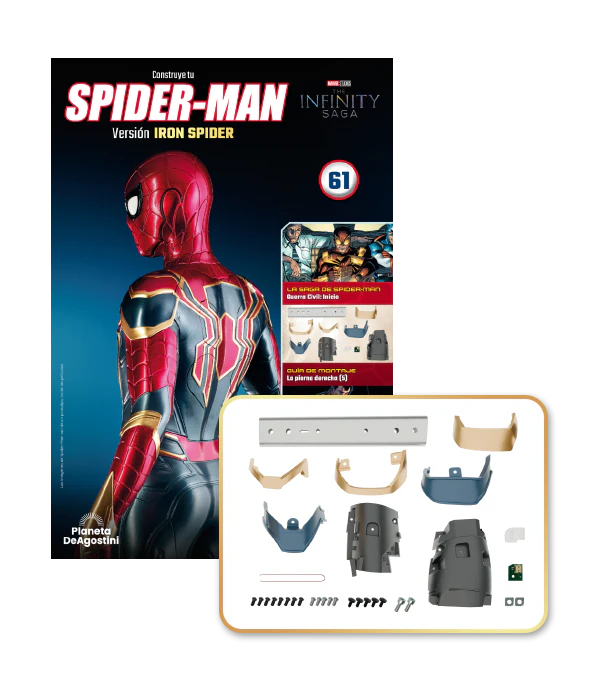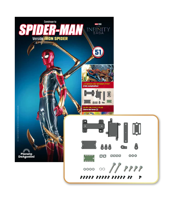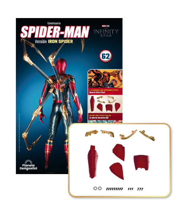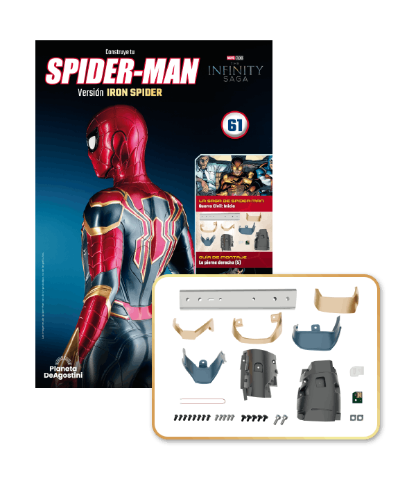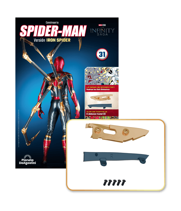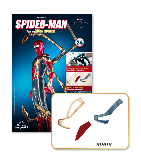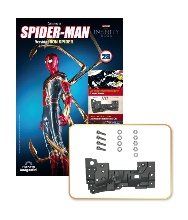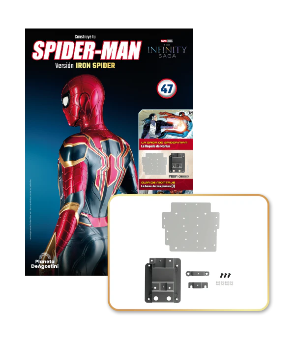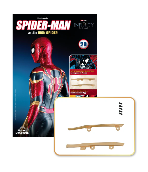 Increíblemente detallada, esta impresionante reproducción a gran escala de la armadura de Iron Spider se ofrece en una nueva colección inédita que ningún fan de Marvel querrá perderse. Además, cada entrega de tu maqueta irá acompañada de un extenso contenido editorial con detalles e ilustraciones increíbles de las películas.