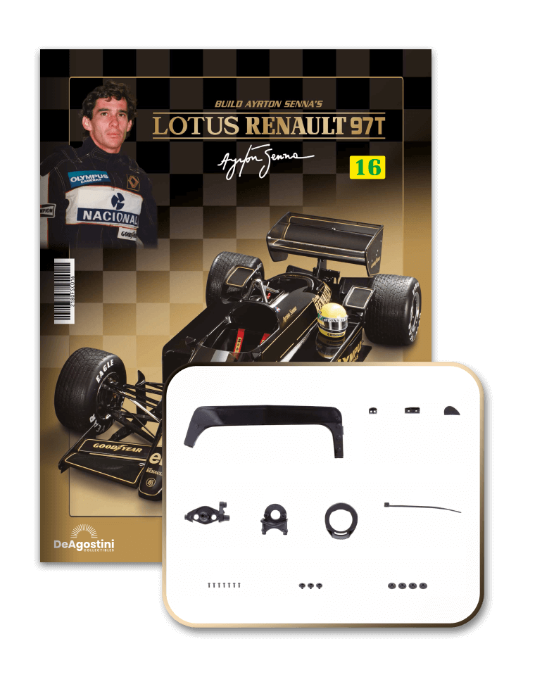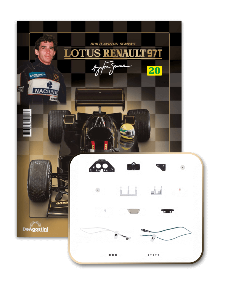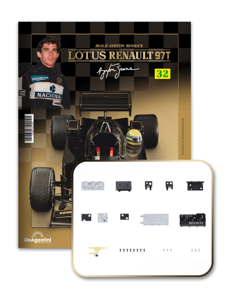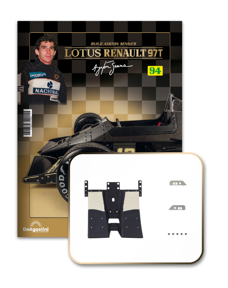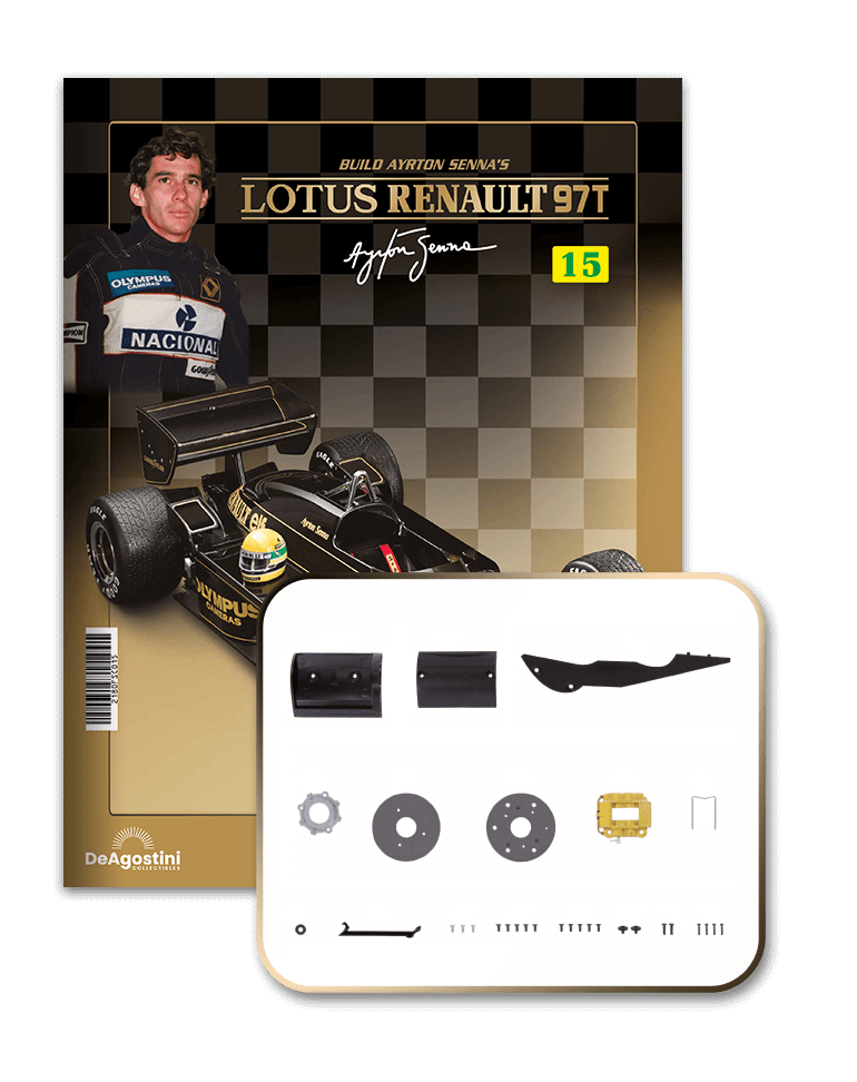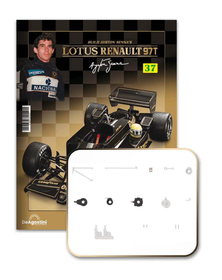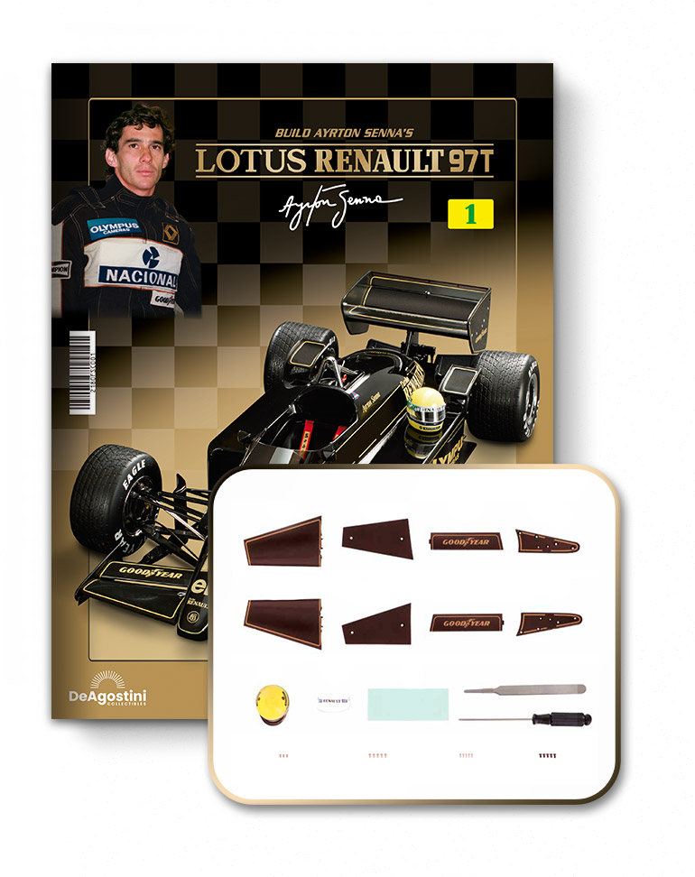 La leyenda continúa para los numerosos aficionados y seguidores de la principal competición de automovilismo internacional. Ahora podrás construir tu propio Lotus Renault 97T, un modelo a escala 1/8 idéntico en cada uno de sus detalles al pilotado por Ayrton Senna. Una réplica basada en los diseños originales del monoplaza conservados por Classic Team Lotus.