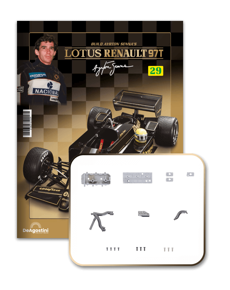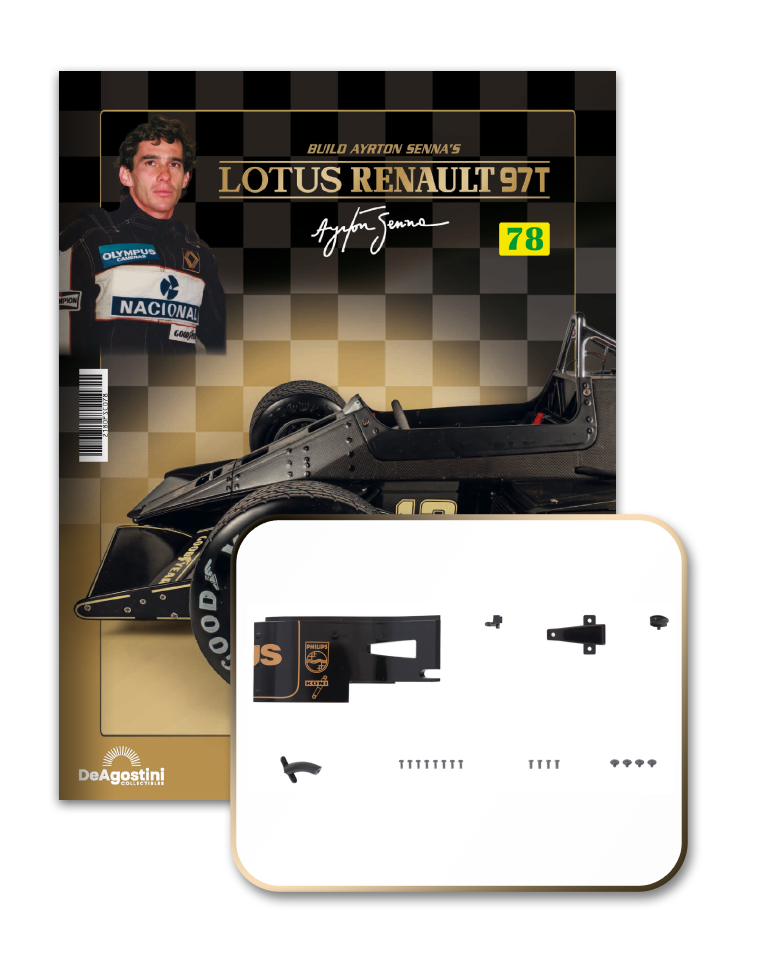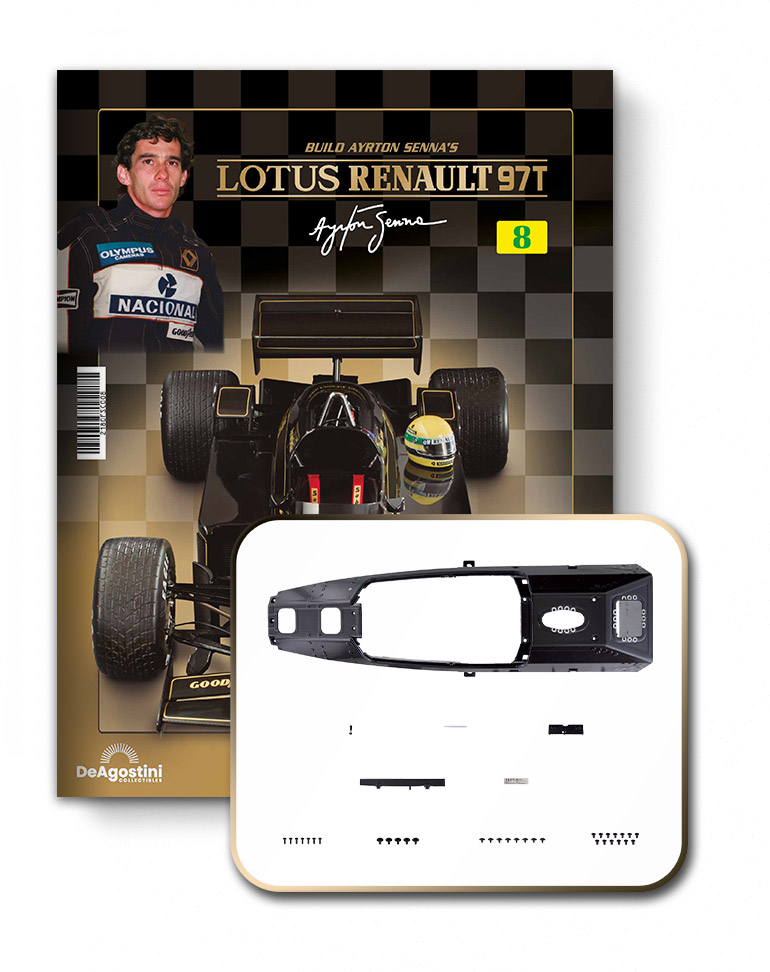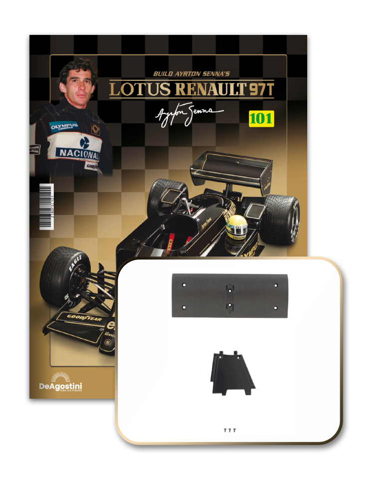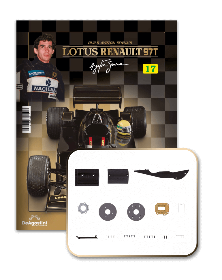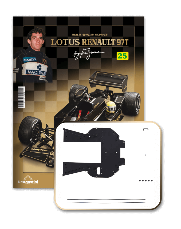 La leyenda continúa para los numerosos aficionados y seguidores de la principal competición de automovilismo internacional. Ahora podrás construir tu propio Lotus Renault 97T, un modelo a escala 1/8 idéntico en cada uno de sus detalles al pilotado por Ayrton Senna. Una réplica basada en los diseños originales del monoplaza conservados por Classic Team Lotus.