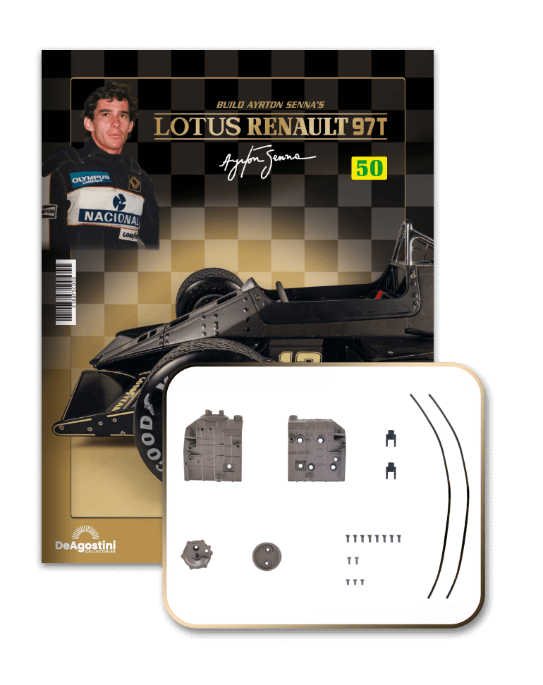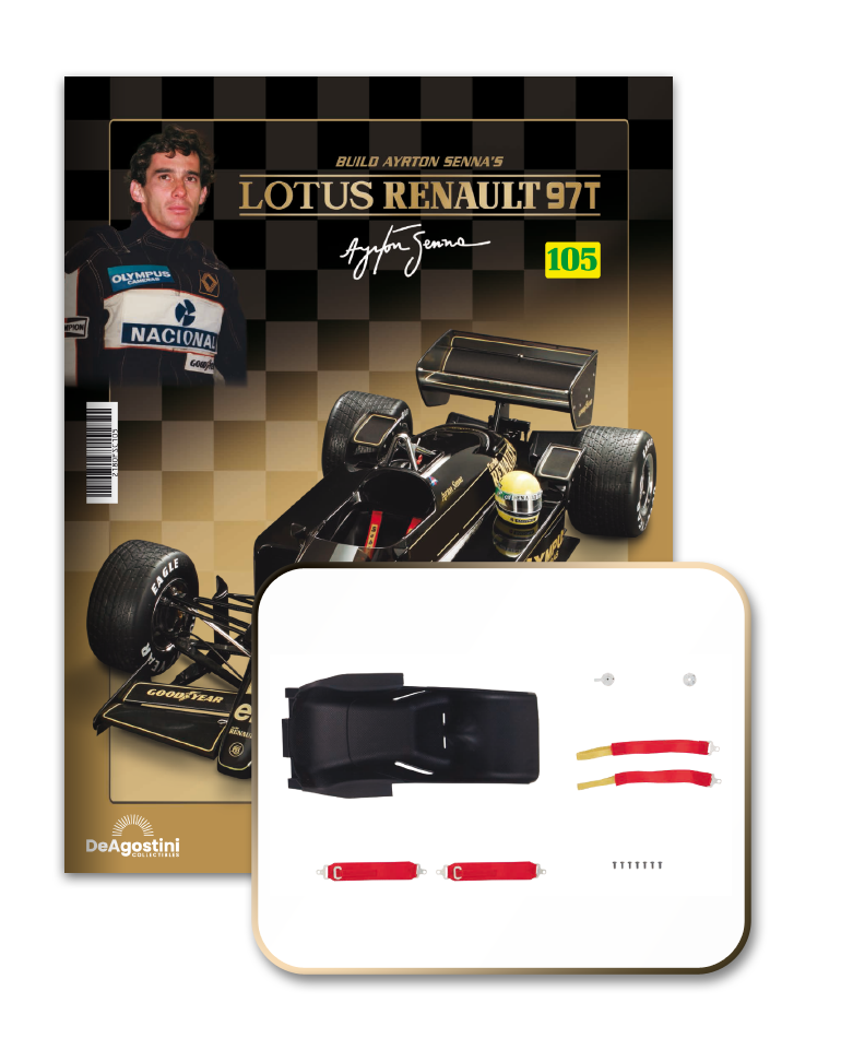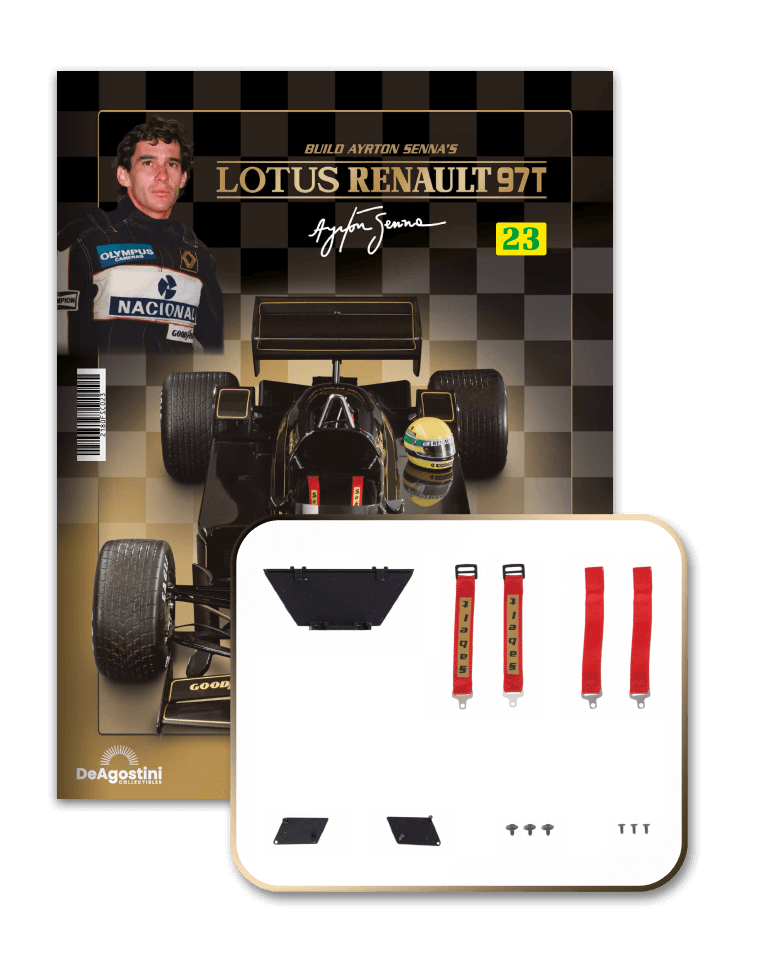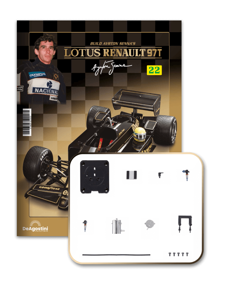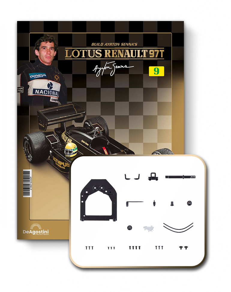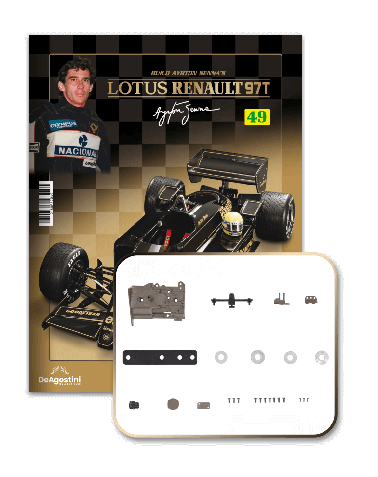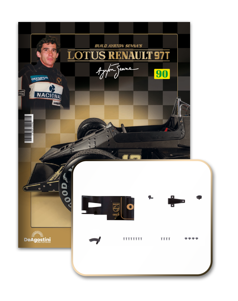 La leyenda continúa para los numerosos aficionados y seguidores de la principal competición de automovilismo internacional. Ahora podrás construir tu propio Lotus Renault 97T, un modelo a escala 1/8 idéntico en cada uno de sus detalles al pilotado por Ayrton Senna. Una réplica basada en los diseños originales del monoplaza conservados por Classic Team Lotus.