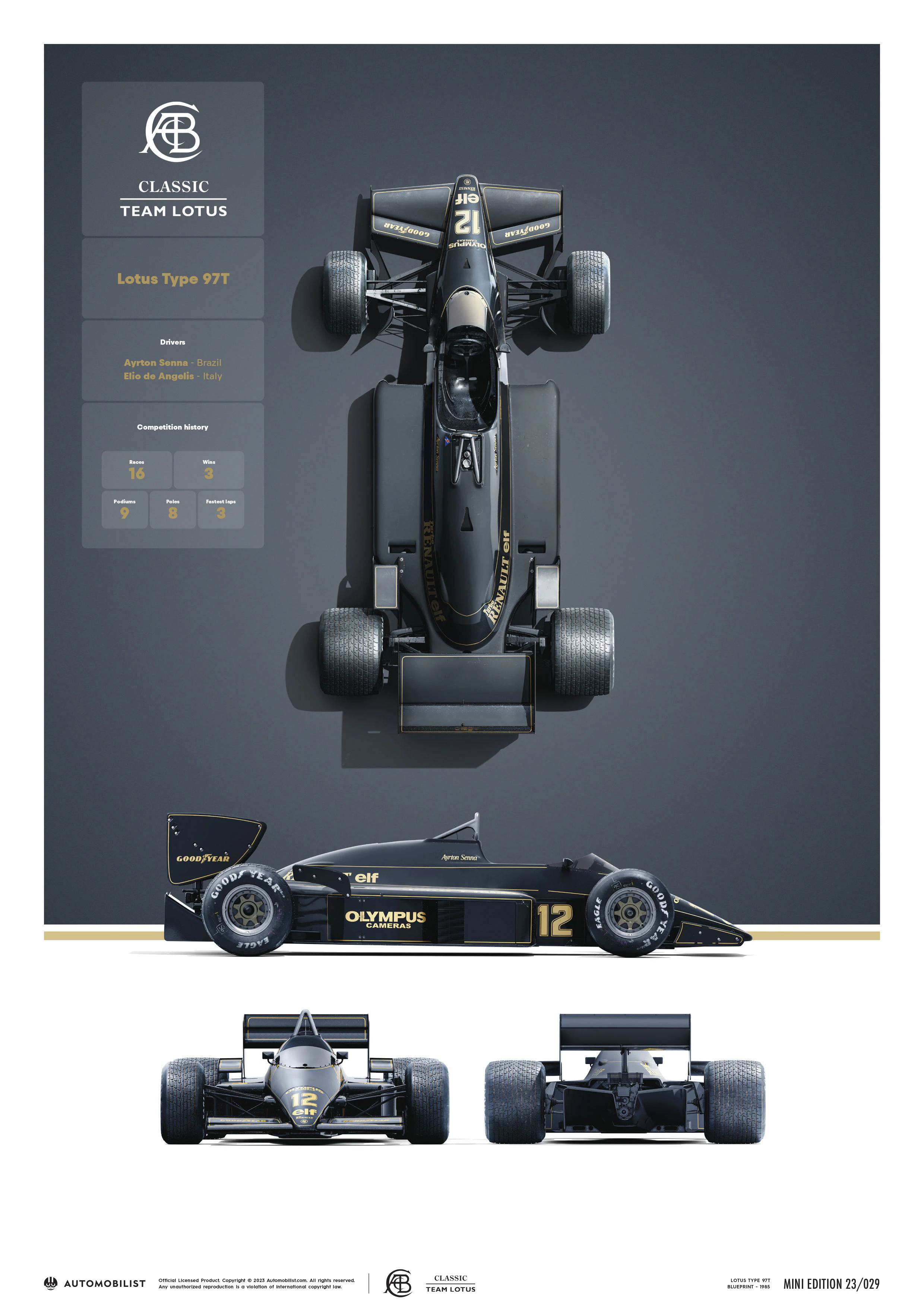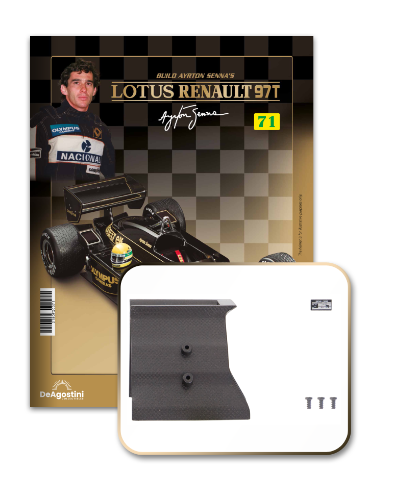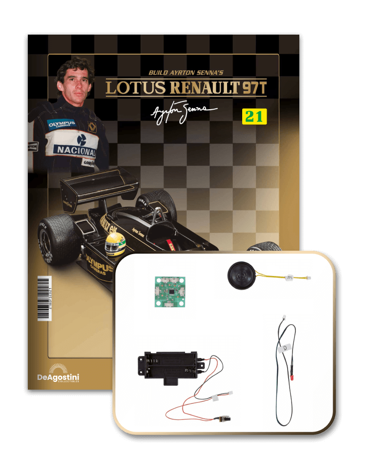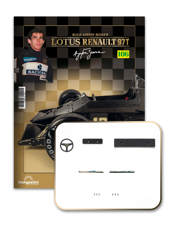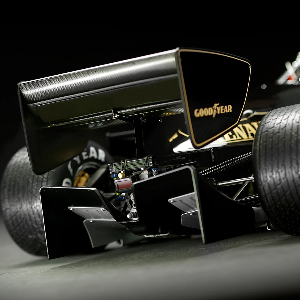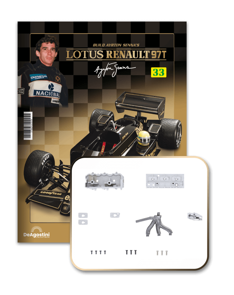 La leyenda continúa para los numerosos aficionados y seguidores de la principal competición de automovilismo internacional. Ahora podrás construir tu propio Lotus Renault 97T, un modelo a escala 1/8 idéntico en cada uno de sus detalles al pilotado por Ayrton Senna. Una réplica basada en los diseños originales del monoplaza conservados por Classic Team Lotus.