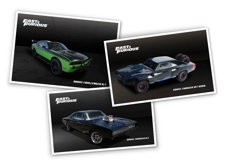 Tres magníficos pósters de los coches Dodge más emblemáticos de la saga.