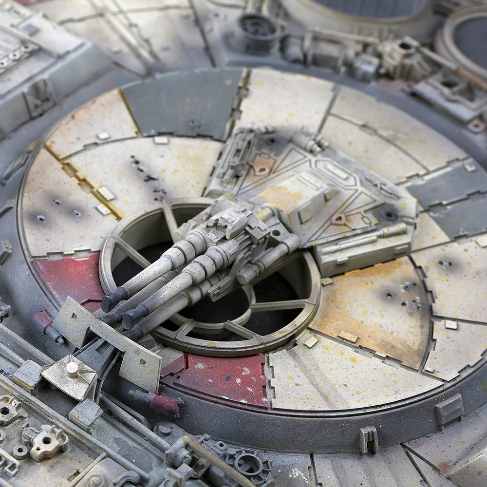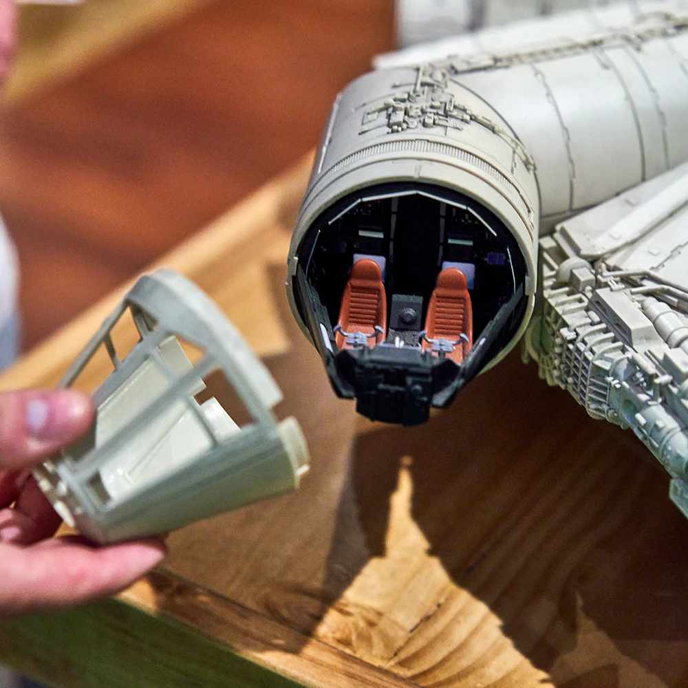 En la trilogía original de La guerra de las galaxias se utilizaron varios modelos del Halcón Milenario, pero el más icónico se construyó para las secuencias de acción de la segunda película, El imperio contraataca. Su maqueta es una réplica auténtica, oficial y exacta de la película, construida a la misma escala, con todos los detalles exteriores tal y como se ve en la pantalla.