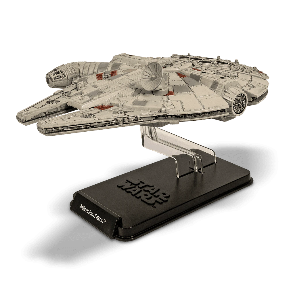 Recibe esta réplica fiel del Halcón Milenario en miniatura pintada a mano y fundida a presión.