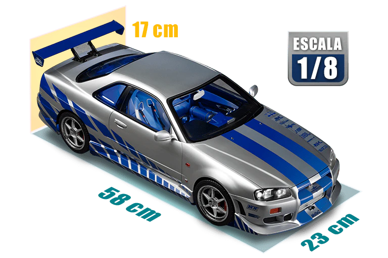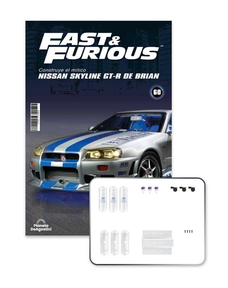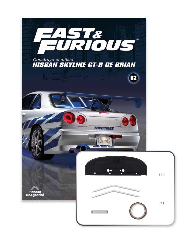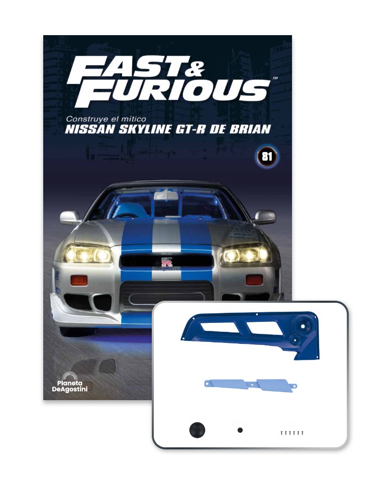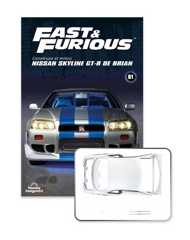 Ponte en la piel del recordado personaje Brian O'Conner y construye tu propio Nissan Skyline GT-R, una fiel réplica de 58 centímetros de largo que reproduce hasta el más mínimo detalle el coche de la película 2 2Fast 2Furious.