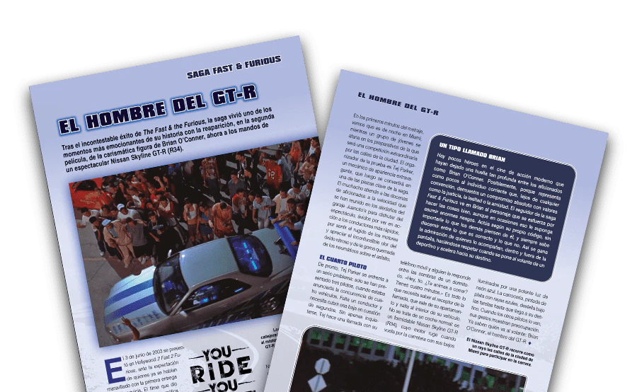 Acción, aventura, familia... Este es el secreto de la saga más famosa de los últimos años. Consigue ahora estas tres magníficas láminas protagonizadas por el Nissan Skyline GT-R de Brian.