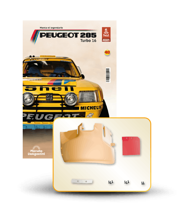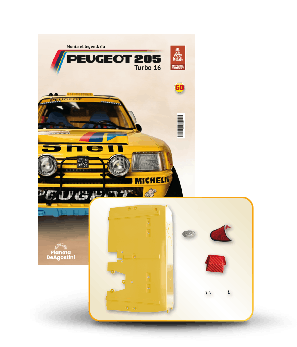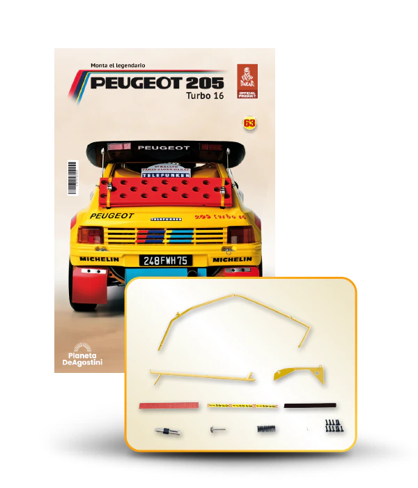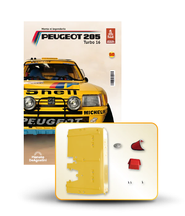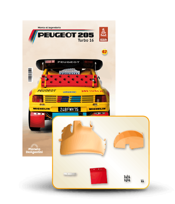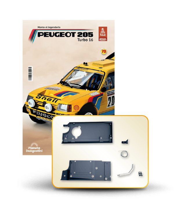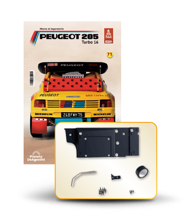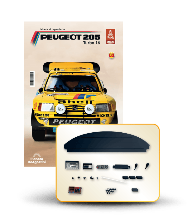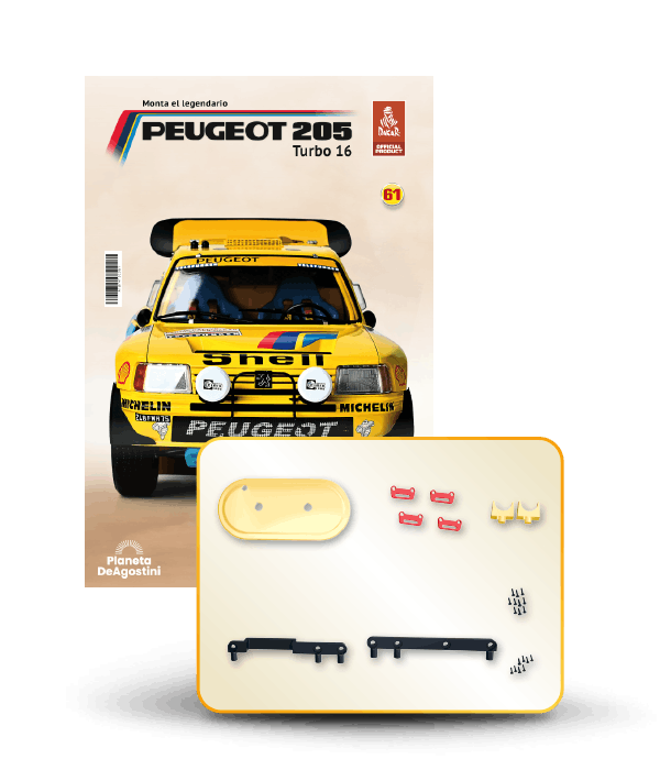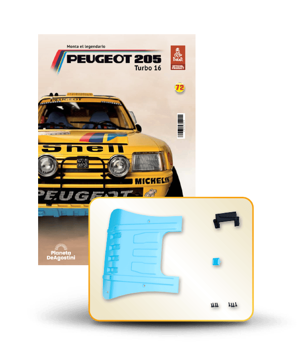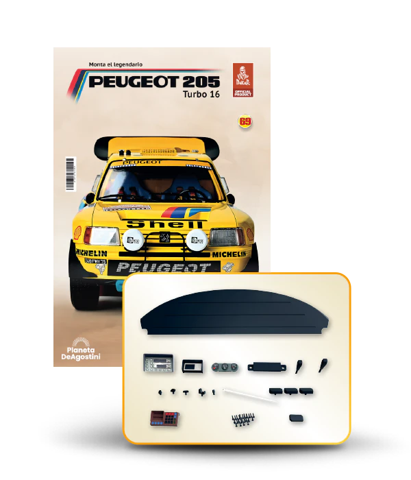 Ahora puedes construir tu propio modelo a escala 1/8 del espectacular Peugeot 205 Turbo 16 Grand Raid. Esta réplica inédita es una prestigiosa incorporación al mundo del modelismo. Diviértete montándola y exponiéndola en un lugar destacado de tu casa.