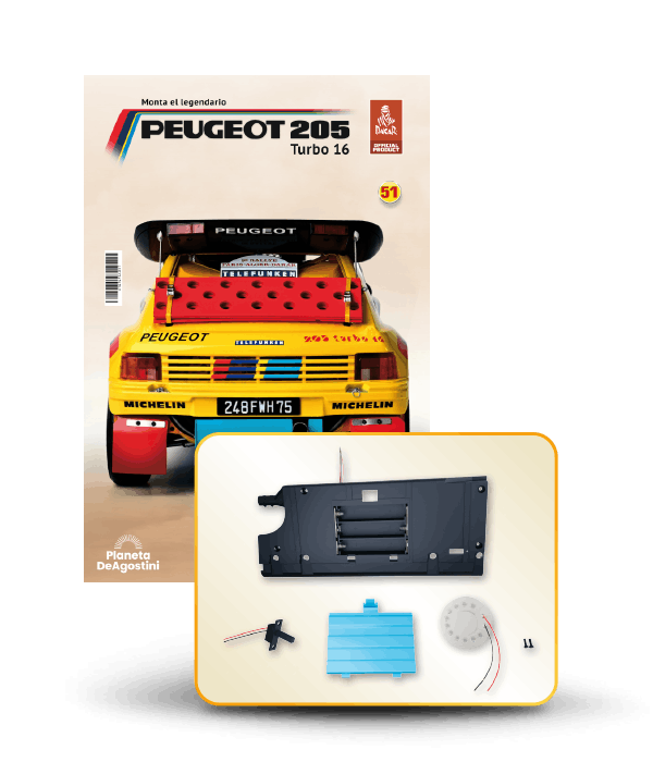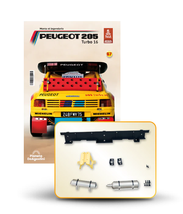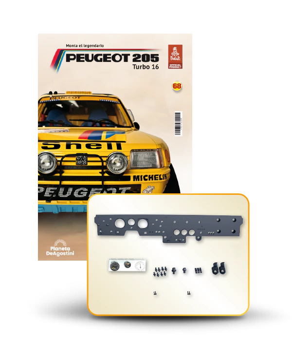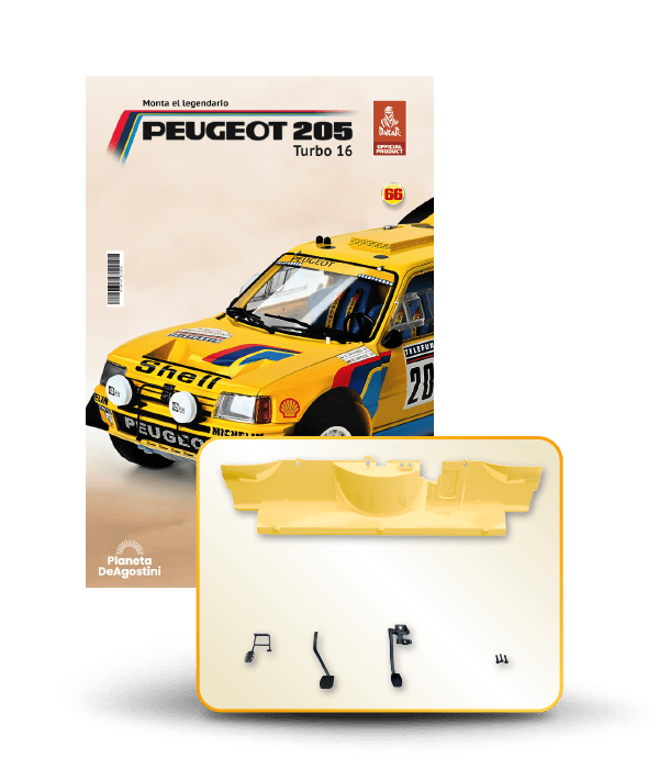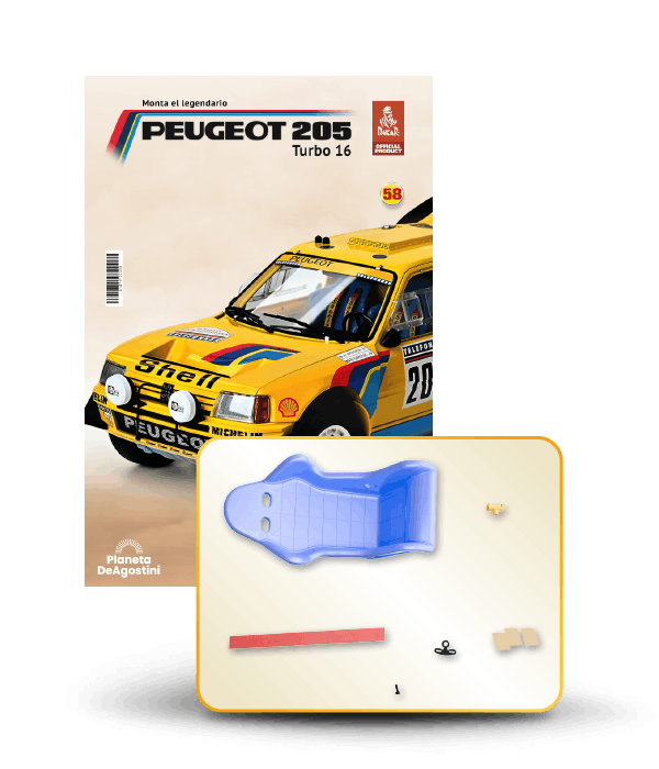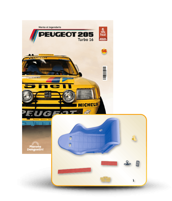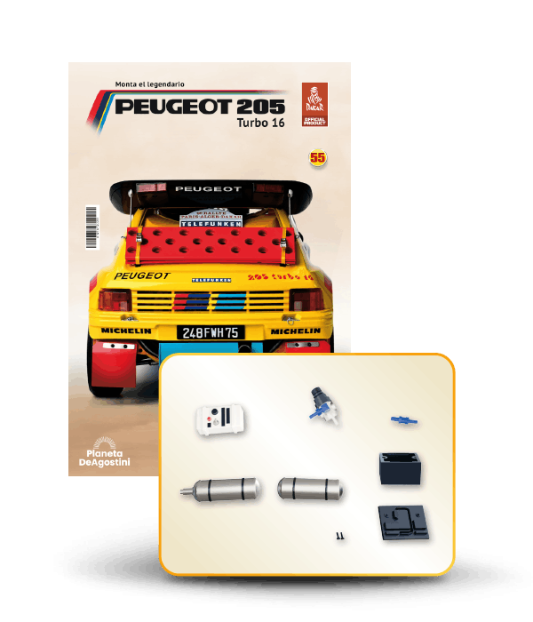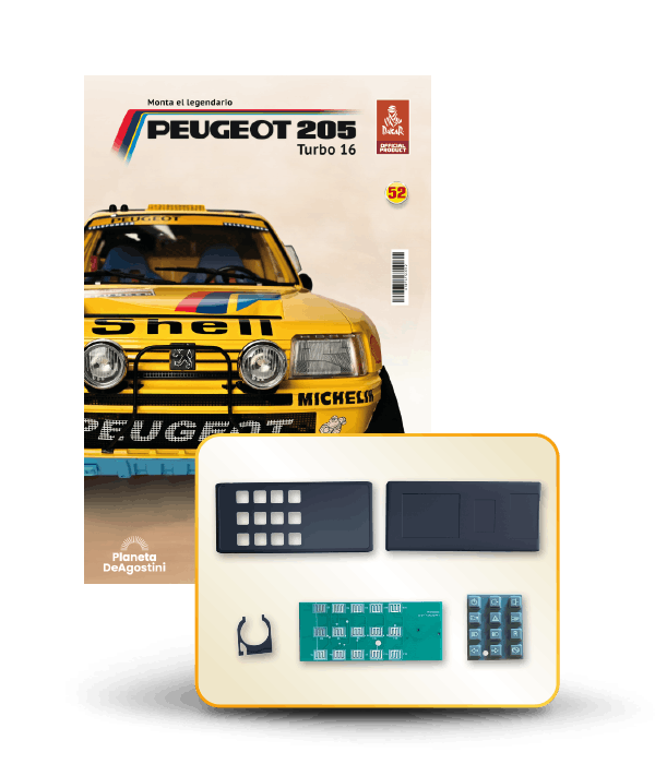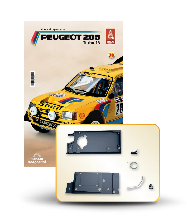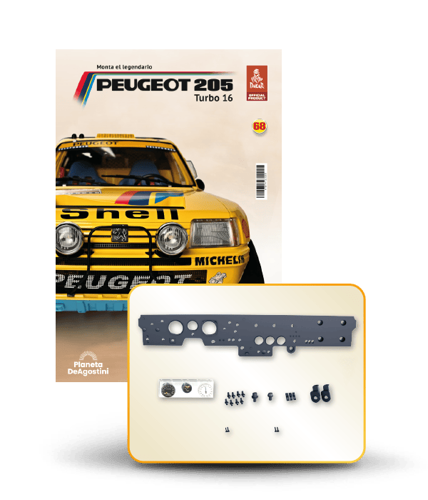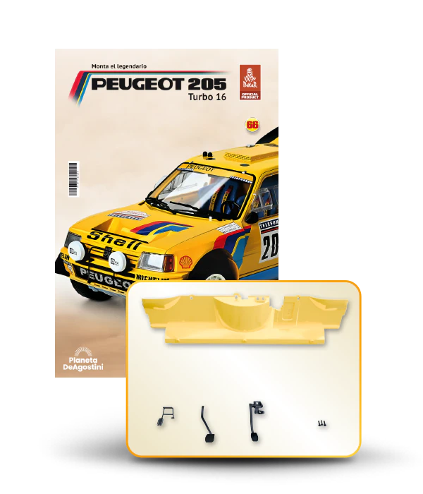 Ahora puedes construir tu propio modelo a escala 1/8 del espectacular Peugeot 205 Turbo 16 Grand Raid. Esta réplica inédita es una prestigiosa incorporación al mundo del modelismo. Diviértete montándola y exponiéndola en un lugar destacado de tu casa.